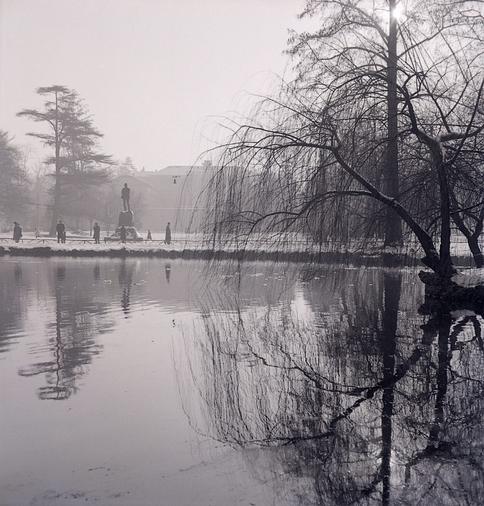 Da quel momento il Parco ha sempre assolto una funzione precisa, a cui non è mai venuto meno: lo svacco, l’ozio, il tempo libero, la quiete viscerale e profonda e fresca e ben ossigenata del verde e delle sue ombreggiature. Non c’è milanese – per nascita, per caso o per vocazione – che non abbia mai passato un pomeriggio al Sempione. Ed è lì, in quelle ore passate a cercar litorali ombrosi o anfratti poco affollati, che ci si rende conto della storia che solca, che trafora, la montagna tutta del Novecento. Perché se il grande EXPO del 1906 lasciò quel gioiello del liberty milanese che è l’Acquario Civico – relegando alla documentazione d’archivio l’anello ferroviario sopraelevato –, dal 1933 il Parco diventa sede per le esposizioni della Triennale di Milano. In questo frangente, di particolarissimo rilievo è la X Triennale, del 1954: una soglia importantissima tra la ricostruzione post-bellica della città e il boom economico nostrano degli anni Sessanta. Quell’anno il Parco venne eletto a vera e propria sezione dell’esposizione, dove progettisti leggendari come i BBPR progettarono il “Labirinto dei Ragazzi” in un boschetto d’alberi del Sempione o la “Casa Sperimentale” – tentativo anacronistico di sintesi tra le arti e decisamente intuitivo, un po’ per il modulare prefabbricato per triangoli equilateri (à la Buck Fuller) o l’ampia visione che confonde interni ed esterni (à la Phil Johnson), nonché per la flessibilità degli spazi. Quel che rimane oggi è l’opera dell’Ico Parisi e del Silvio Longhi: il “Padiglione per il Soggiorno”, edificato sul cosiddetto “Monte Tordo”, che oggi è la Biblioteca al Parco, con tanto di pitture di Bruno Munari. E ovviamente il Bar Bianco, all’attivo ancora oggi, inizialmente dedicato alla vendita del latte e dei gelati per i bambini – da qui il “bianco” – e con piastrelle in ceramica Richard-Ginori – un grande classico che solca ormai quasi centotrent’anni di storia meneghina.