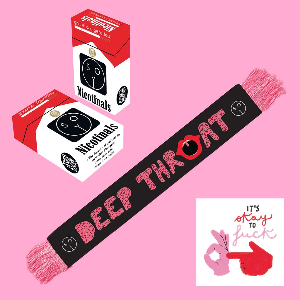 Eccoci al dunque allora, per celebrare nel segno dell’unione dei corpi martoriati dal distanziamento sociale questa ricorrenza, ZERO e TINALS hanno deciso di regalarvi un pacchetto NICOTINALS della serie SOY, illustrato da Isabella Bersellini giocando sulle categorie del prono più in voga nel web, e una sciarpa di lana DEEP THROAT, sempre illustrata da Isabella, per tenervi al caldo e tuffarvi tra le coperte in formissima. Per partecipare al contest basta rispondere a questa semplice domanda:
