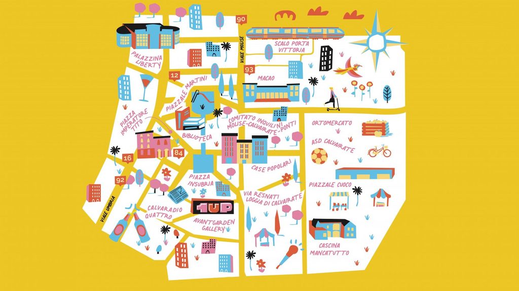 E parlando di cose, come non citare la Mercanzia di Calva, una collezione di item irrinunciabili come il Calvatappi “Un’altra Estate a Calvairate”, la shopper “Love Calvairate” o le cartoline dalla grafica seventies con i palazzoni di piazzale Martini che trovano posto dentro alla scritta “A Calvairate tutto è ok”. Vero e proprio merchandising in vendita sul sito ma con rigorosa consegna a mano, che agli occhi più smaliziati potrebbe sembrare un bieco tentativo di fare branding, come successo in altre zone più a nord, diventate acronimi in pasto alla gentrificazione. Ma che nel cuore puro dei lodgers non è altro che un modo per dichiarare ai quattro venti il proprio orgoglio di Calvairatesi e far circolare pezzi da collezione che tra una decina d’anni finiranno sulle bancarelle del mercato delle pulci di piazzale Cuoco, di fianco a nostalgici Emiglio Robot e tazzine da the di ceramica finissima made in Bulgaria.