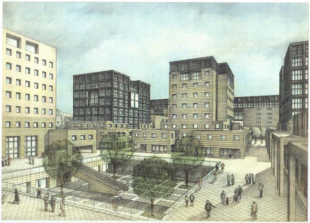 Gregotti progetta una nuova cittadella, un punto di riferimento culturale che si propone come nuova centralità della periferia milanese; un complesso quasi monumentale, per la magniloquenza con cui si impone nel tessuto urbano, ma che non ricerca l’applauso grazie a un linguaggio sobrio e distaccato, che diventa espressione – ed espressivo – più per la postura nei confronti della città che per le linee architettoniche. Le aule del polo universitario e i laboratori si affiancano, fondendosi in blocchi rossi come le red brick university nelle città inglesi ma in una scala sovrumana. Le piazze, nascoste all’interno di questi recinti, si riallacciano alla città, separata da un vasto parco su cui si erge sinuosa la collina dei Ciliegi, cuore materico del luogo e custode delle sue macerie. Possiamo dire che si scelse un progetto mite il quale, quantomeno a parole, non dimostrava quell’estetica del potere che usa contraddistinguersi per la verticalità, la spettacolarità, l’ostentazione del capitale e la promiscuità degli ingorghi. Né si scelse l’edificio alto, che Vittorio Gregotti non amava.