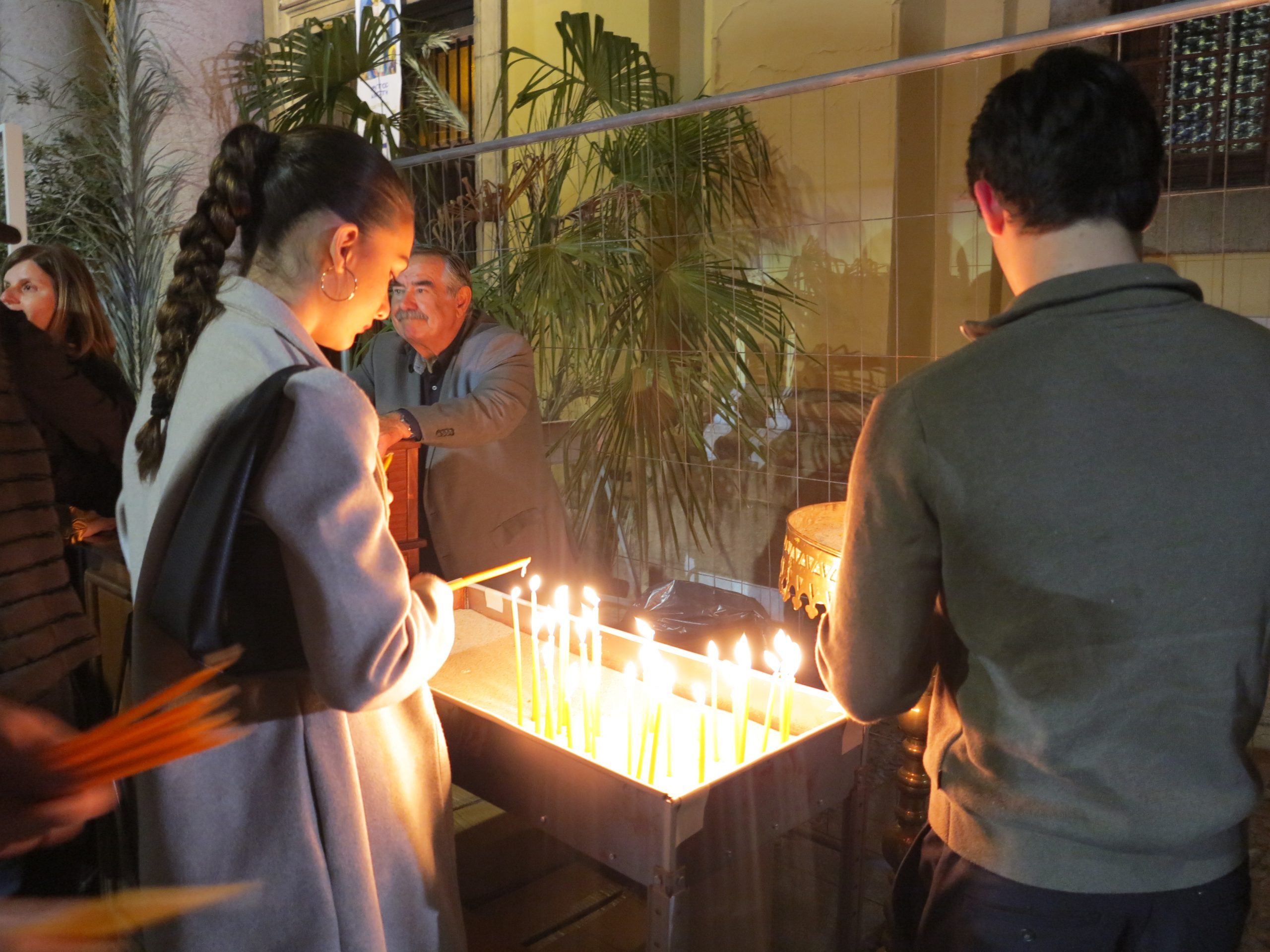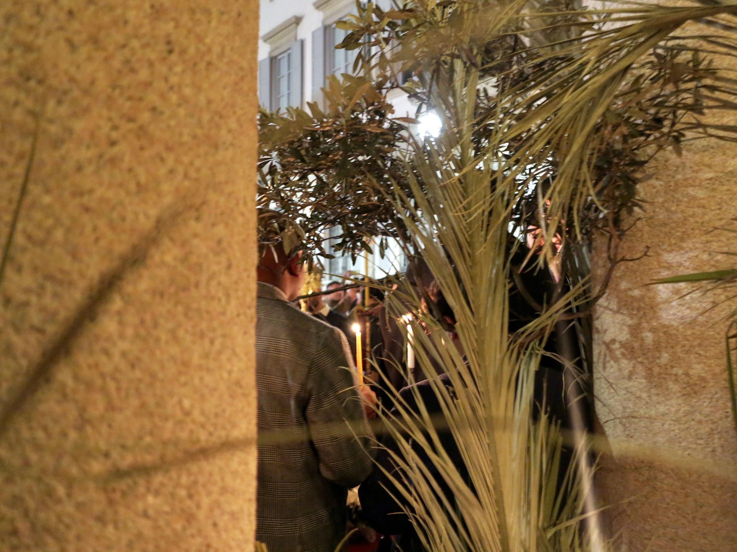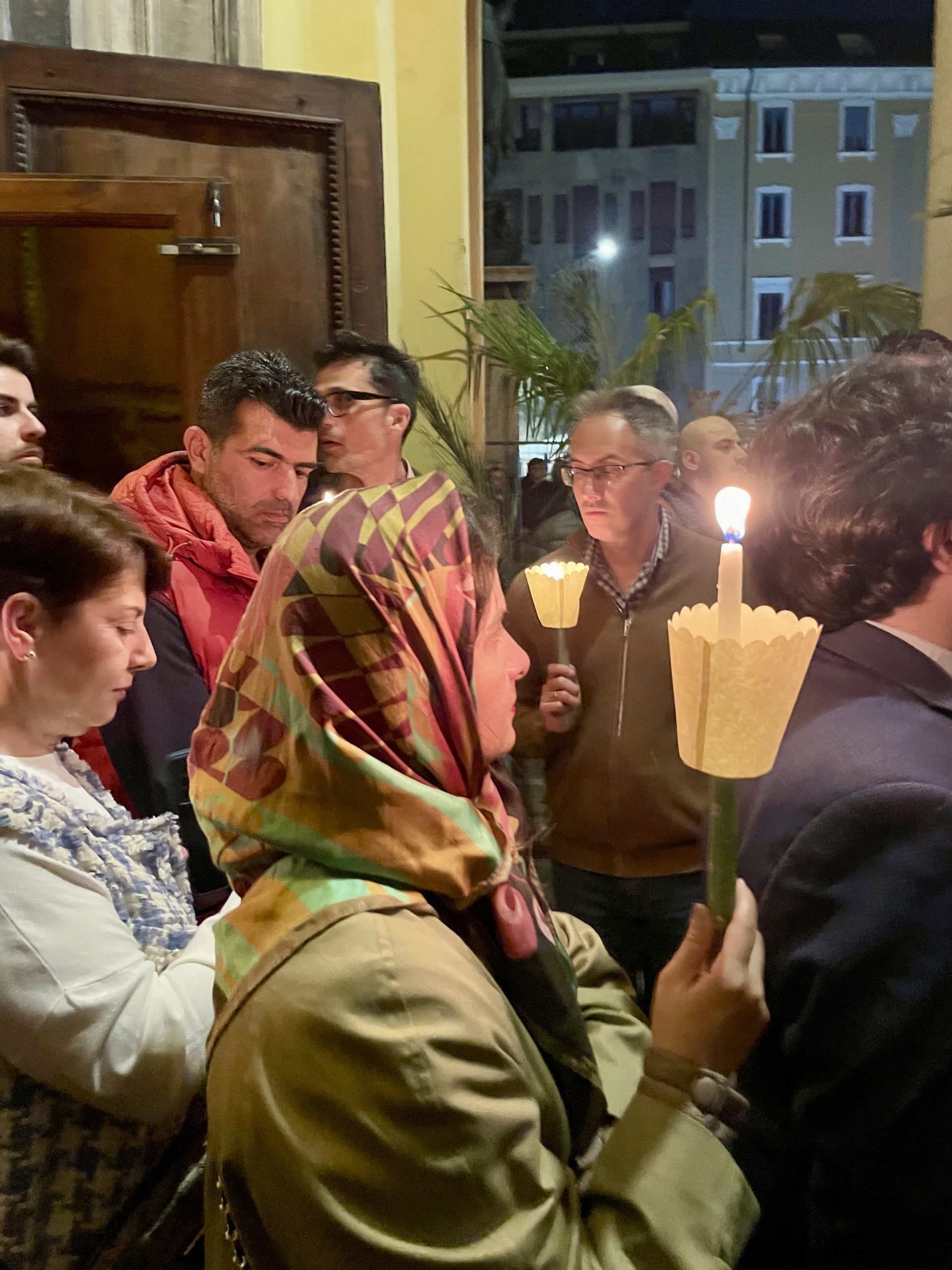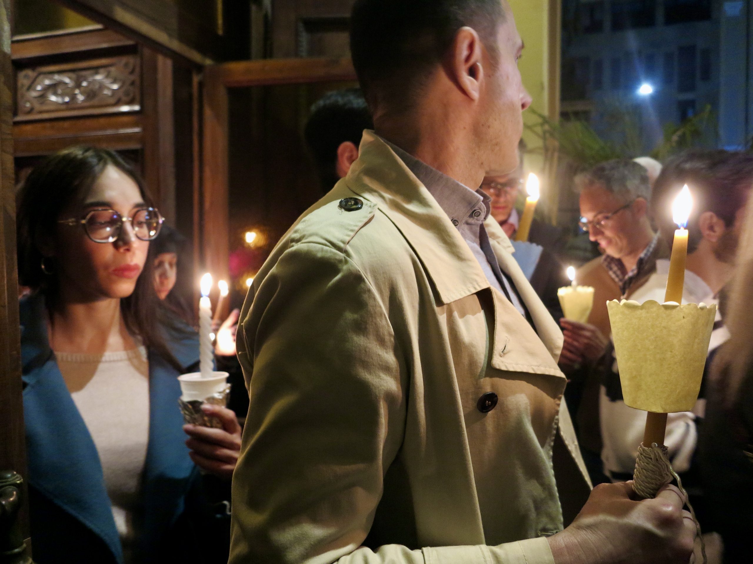 I volti contenti stringono le candele che proiettano piccole ombre sui muri della chiesa di Santa Maria, dove l’iconostasi — un tramezzo di legno con le icone della religione ortodossa — brilla di luce dorata. Una corona di lillà rilascia nella chiesa un tenero e fresco profumo che si sparge con garbo tra i fedeli intenti ad ascoltare il papas, il prete ortodosso: una lunga barba bruna sotto due occhi gentili.