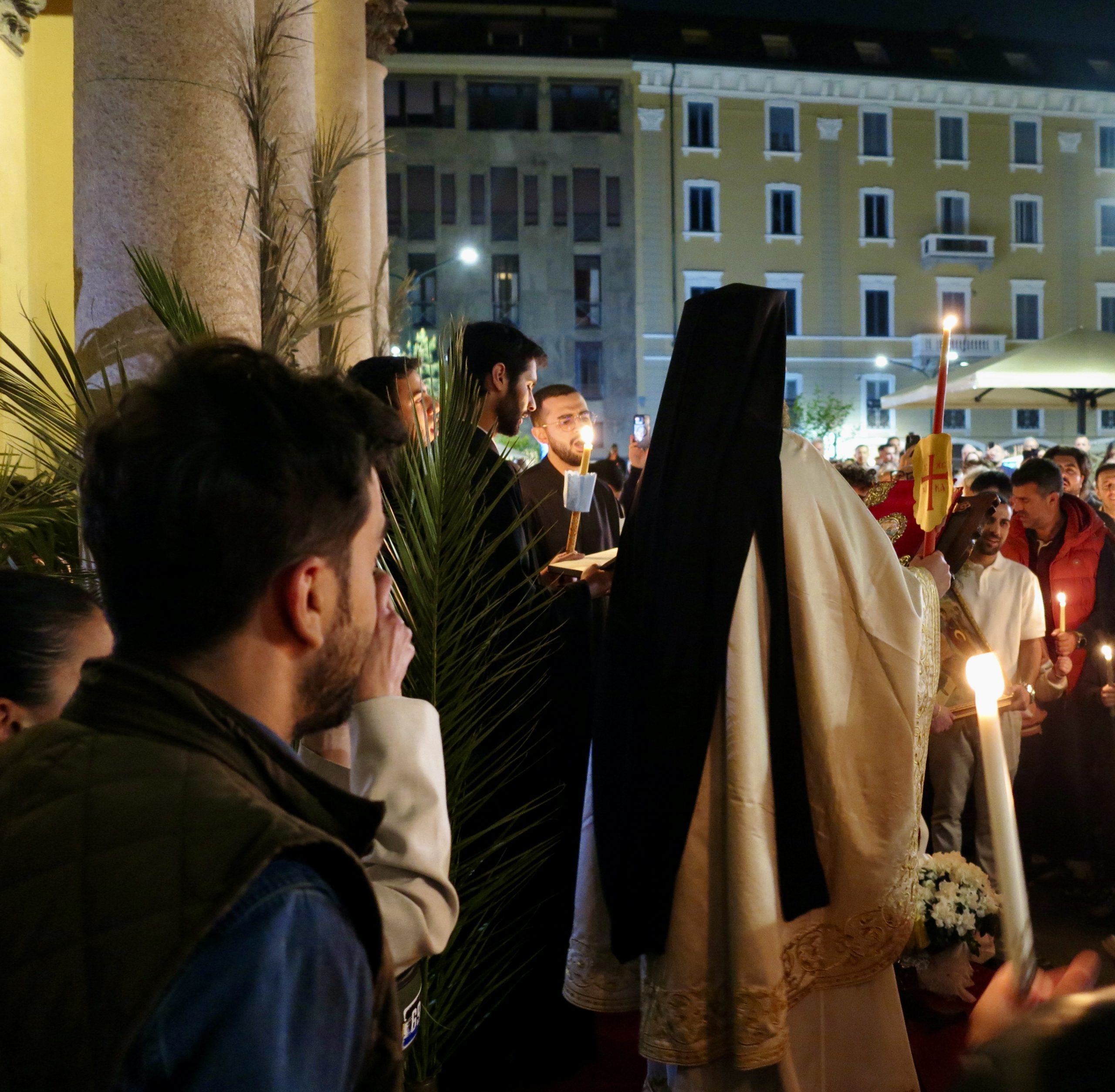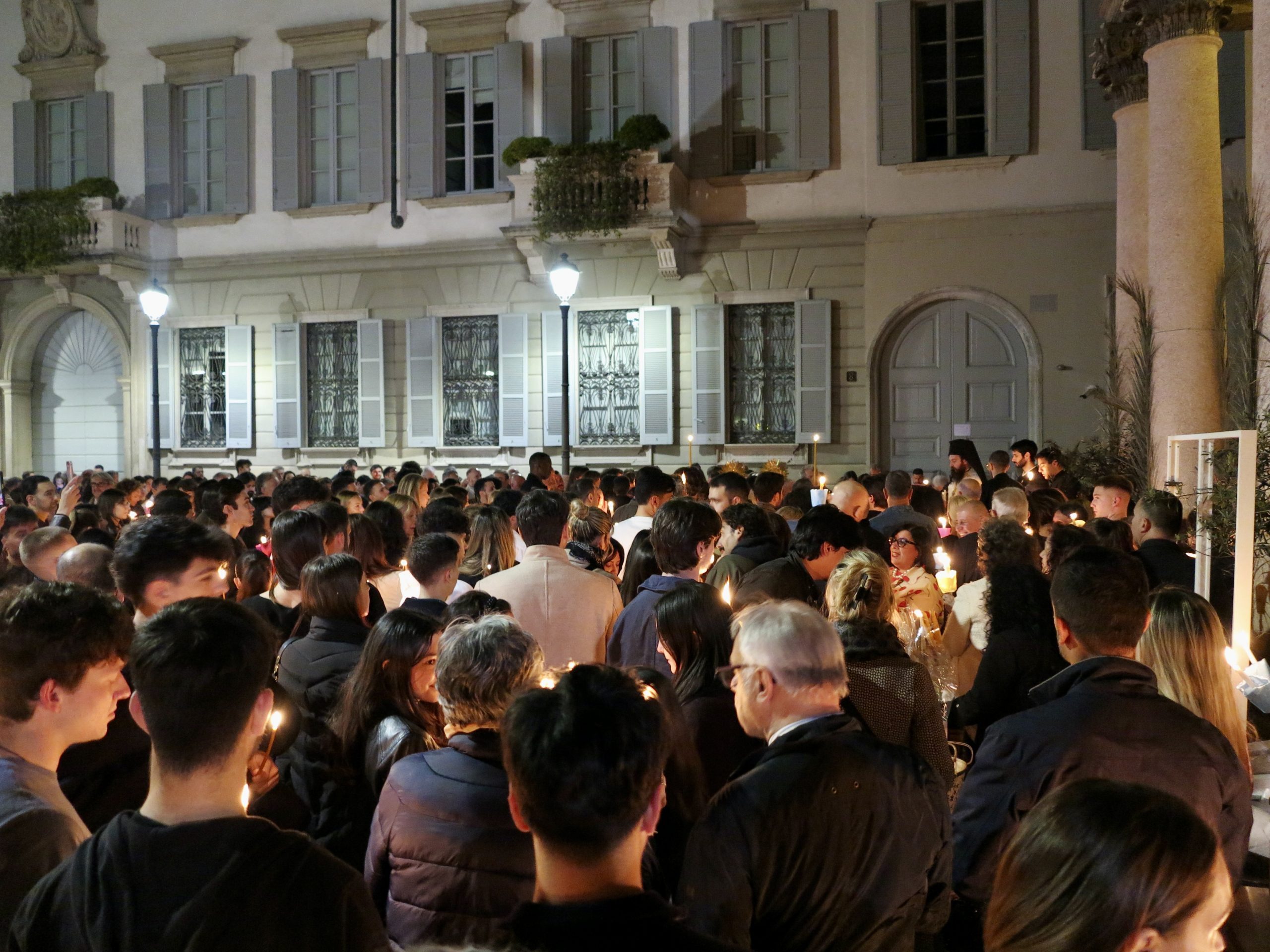 I piccoli fuochi delle candele bianche vibrano nella notte di sabato in piazza Borromeo, nel cuore di Milano. Intorno alla mezzanotte le campane suonano a festa, mentre un nutrito gruppo di fedeli si raccoglie in silenzio per celebrare la Resurrezione di Cristo. Un coro di voci si alza all’unisono cantando Christòs Anèsti, Gesù è risorto; a cui un secondo coro fa eco con un Alithòs Anèsti!, è davvero risorto.