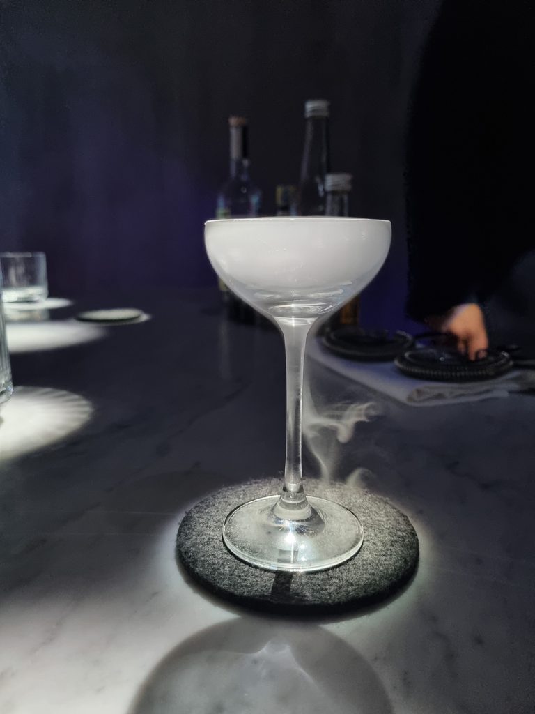 Infatti il concetto alla base è quello di fruire di una porzione di tempo nella quale ci si possa estraniare per vivere una cena multisensoriale. Si possono acquistare tre formule: 30, 60 o 90 minuti, ovviamente estensibili se vi è disponibilità. All’interno del tempo, i Martini sono illimitati e serviti in coppe da mezzo drink in modo da avere la possibilità di assaggiarne più tipologie, mentre, oltre a un piccolo aperitivo di benvenuto, i piatti vengono serviti ogni 15 minuti senza avere la possibilità di conoscere prima il menu o quello che si andrà a bere. Domenico ci spiga che da Ca-Ri-Co si vuole abbattera l’aspettativa che la gente si fa di un locale osservandolo prima dai social, per questo l’esperienza sarà completamente alla cieca, spostando l’attenzione solo sul momento attuale. Questa messa laica è scandita esclusivamente dall’esecuzione di un Martini alla volta e dal ritmo dei piatti di Leonardo: proviamo una successione di drink che stupiscono per eleganza, raffinatezza e schiettezza dei gusti al palato. Nel frattempo parliamo con Domenico, il tempo ci sembra veramente dilatato, il Martini non sembra più quel cocktail inarrivabile e inacessibile, grazie al lavoro dei ragazzi di Ca-Ri-Co che svecchiano questo immaginario legato al cocktail.