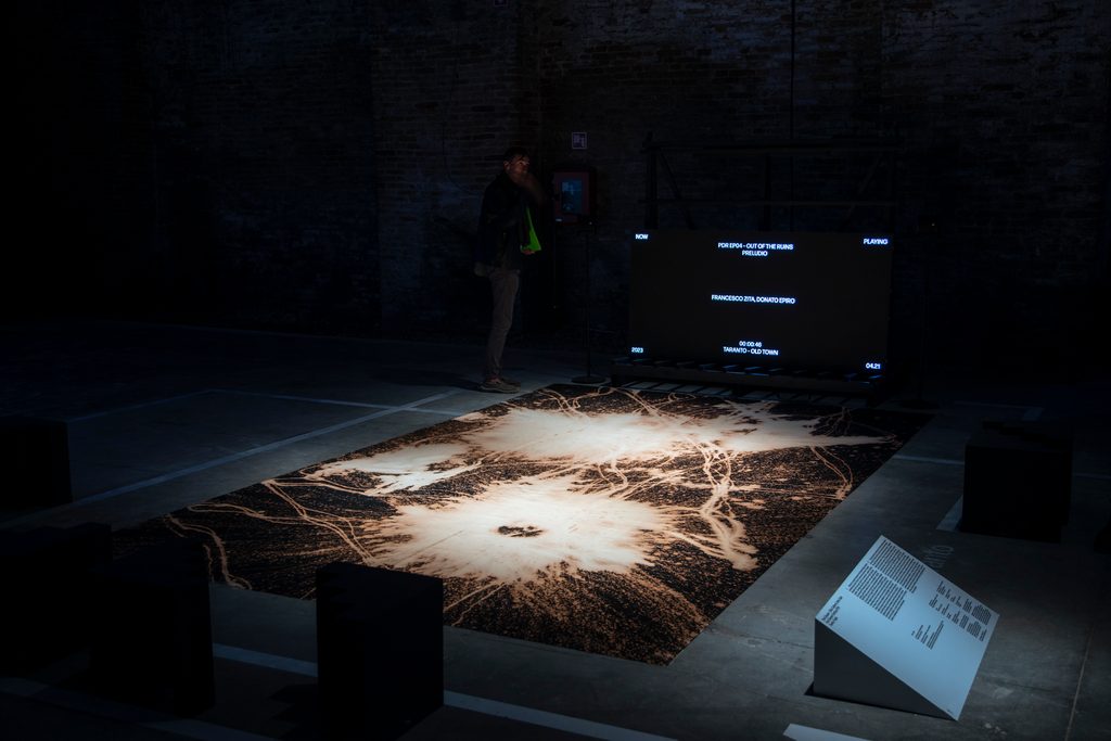 Insomma, riflettendo sul titolo di questa Biennale, ci rendiamo conto che l’argomento in primo piano non è tanto il futuro, una prospettiva lontana verso l’utopia, bensì proprio il laboratorio nel quale lo si sperimenta. Dove si trova allora? Dove oggi è importante lavorare? Possiamo dirlo con certezza: sta sotto i nostri piedi, a terra, perché è con la terra, oggi esplosa in un inedito arcipelago, che l’uomo sta cercando nuovi rapporti, nuove liturgie, nuovi patti di convivenza che radichino il nostro immaginario in altre concezioni di spazio.