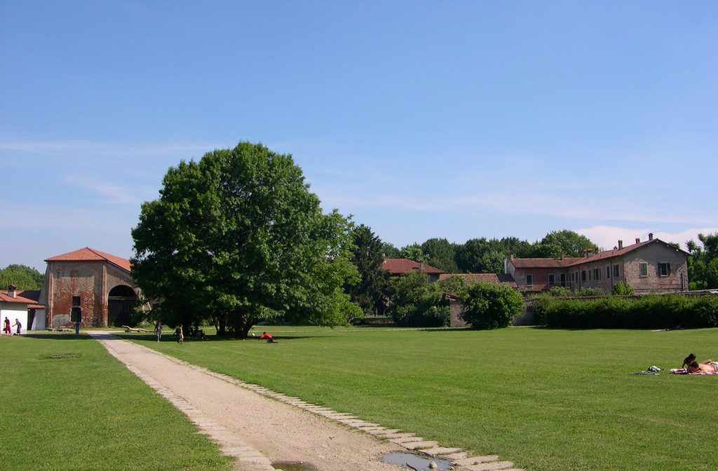 Prati, boschetti e pioppeti circondano il duecentesco borgo rurale Monluè. Se vi sdraiate vedete il cielo panciuto e le pance degli aerei di Linate. Per sognatori.