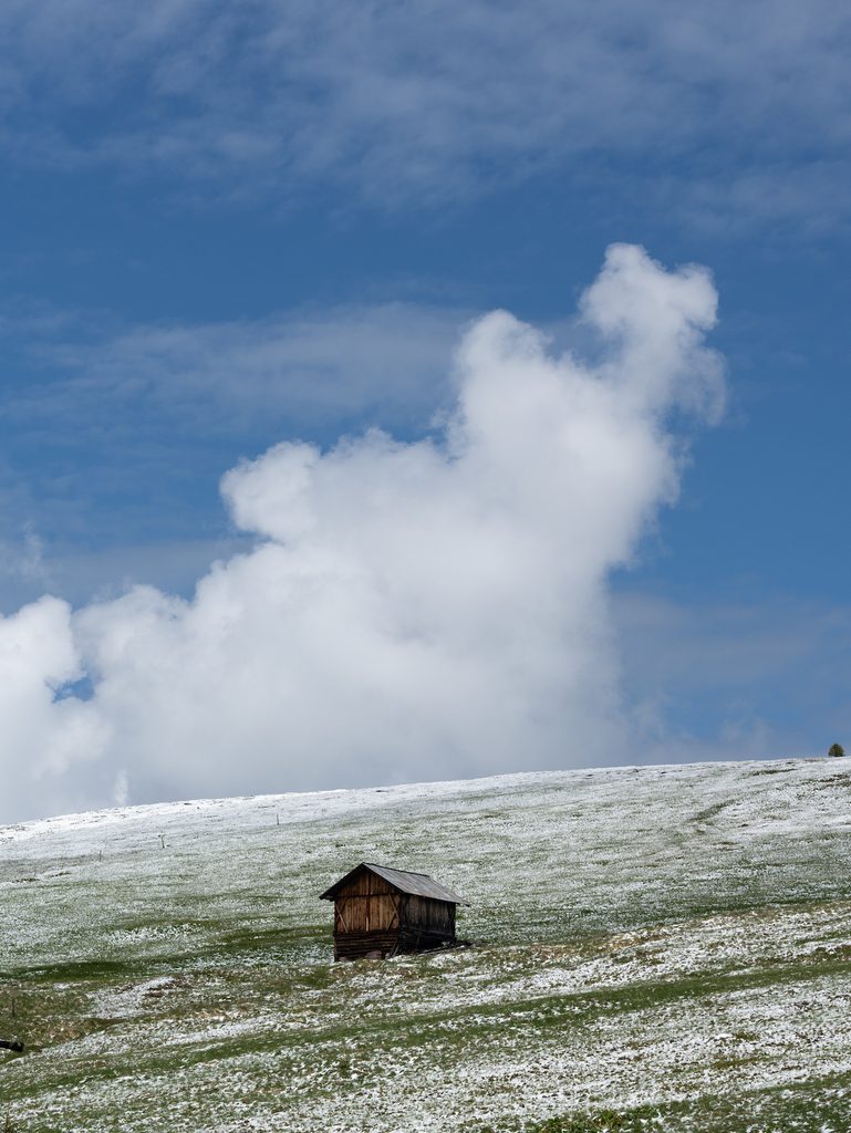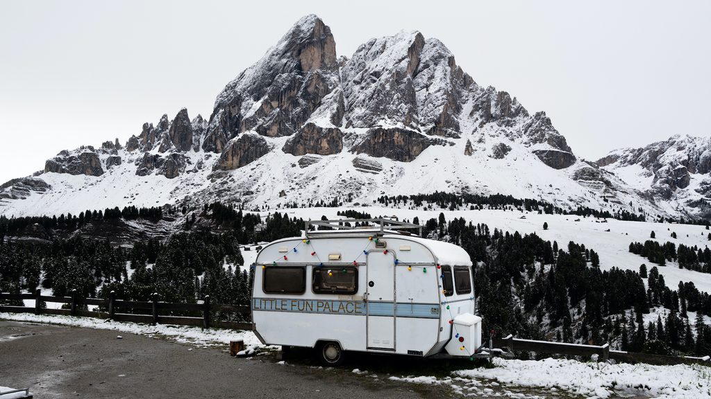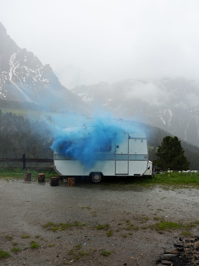 Eccola. Al Passo delle Erbe in Val Badia, ai piedi dell’imponente Sas de Pütia (una parola, questa, il cui significato è andato perduto e di cui ci resta solo il suono). Lei è piccola ma è capace di arrampicarsi sui pendii più impervi. Lei è Little Fun Palace, il punto zero di questo paesaggio nomadico. È domenica 2 giugno, Festa della Repubblica e si aprono davanti a noi 14 giorni.