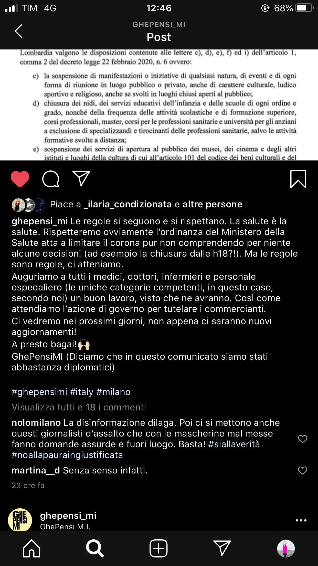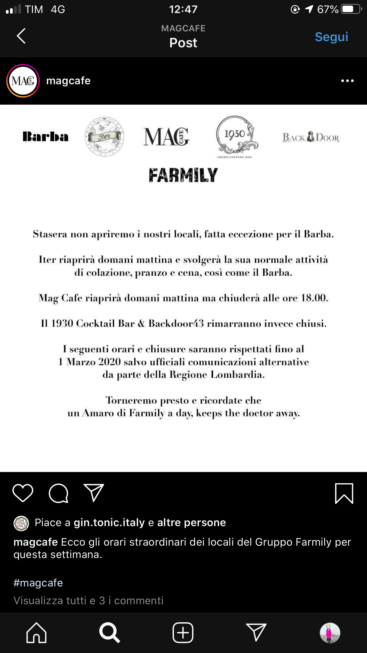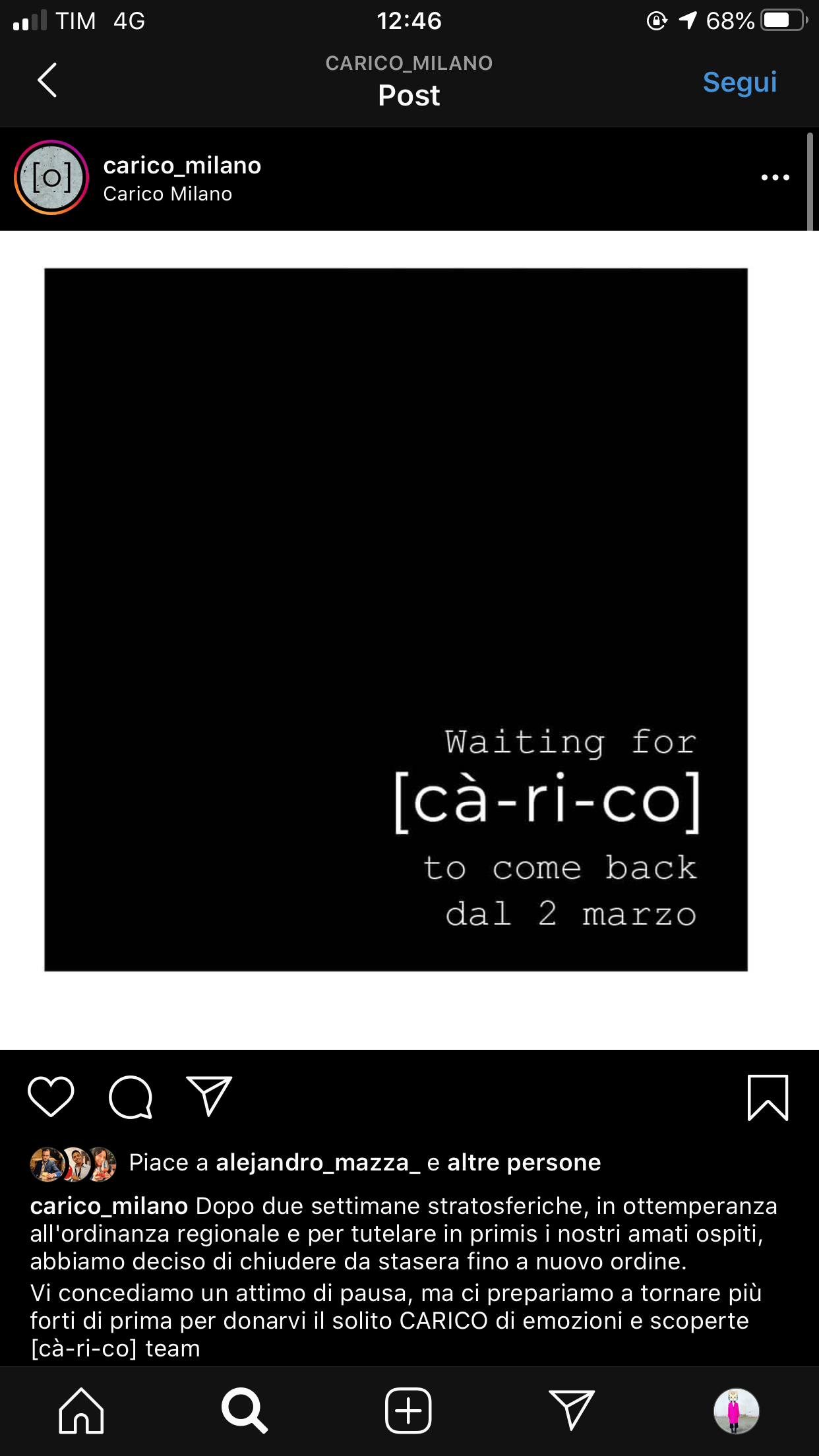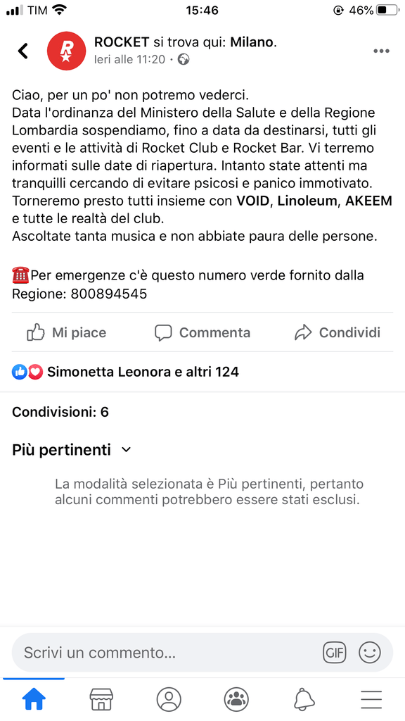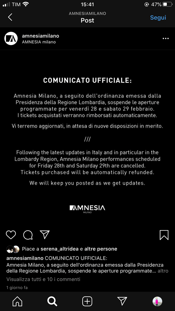 Queste le reazioni di Ghe Pensi Mi, Mag Cafè, Cru, Rita, Bar Picchio, Carico, Caffineria Rocket Milano, Magnolia, Volt, Amnesia, solo per citarne alcuni. ZERO supporta tutti i bar della città e gli indirizzi notturni colpiti, invitandovi a ridurre si i contatti ma concedervi – quando possibile – un caffè o uno spritz nel vostro bar del cuore, nelle ore diurne.
