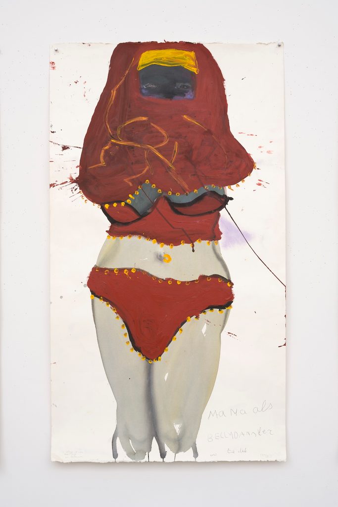 Con Marlene si è in amore, e quindi in battaglia ad ogni esposizione, ad ogni suo gesto, con ogni sua dichiarazione. Questa volta l’attraversamento è celebrazione. Una camera acusmatica dove la dimensione del riverbero prova a diventare lo scheletro della società attuale, con i suoi rapporti di dominio, contraddizioni e storie d’amore, criminali, traditrici o semplicemente tragiche nel loro esistere e quindi solo forma in sé, senza pensiero. La trasformazione è silenziosa. Non è oggetto di conoscenza attraverso la conoscenza. Avviene nella percezione del sensibile e le sue contrazioni. Contrazioni che Marlene mette in discussione usando il suo privilegio, come risorsa e non come colpa. La Sabina di Anais Nïn in “Una spia nella casa dell’amore”, scrive: “Per la prima volta, nello squallore di questa passeggiata di primo mattino per le strade di New York non ancora ripulite dei mozziconi di sigarette e delle bottiglie vuote di liquore della gente notturna, Sabina capì il quadro di Duchamp che rappresentava un nudo nell’atto di scendere le scale. Otto o dieci silhouette della stessa donna, come altrettante rivelazioni molteplici della personalità di una donna, ordinatamente divise in molti strati, che scendevano le scale all’unisono.”. Ecco Marlene camminare negli strati di questo panorama di esseri, che è come se lei ogni volta riportasse in vita. Portasse sulla vita, nella danza dei suoi concepimenti continui, dove la pittura si riconquista la contemporaneità proprio perché inattuale e satura. Fine Aperta per Marlene Dumas che terminerebbe l’attraversamento con la morte dell’autore, come annuncio del disfarsi del piedistallo del mondo, la deposizione nella piega della vita, una scelta che appena dopo si riprende il respiro con l’ultimo dipinto: Persona. Un ritratto, un volto, un ennesimo urlo che riapre il gioco di un’incessante danza, una danza d’amore, la danza della vita.