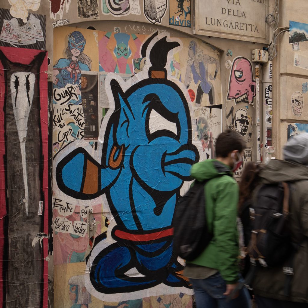 Mediamente uno street artist deve avere tre qualità: un concetto forte alla base del proprio lavoro; abilità tecnica e manuale (e questo vale per ogni tipo di artista); la capacità di essere virale e farsi trovare ovunque, sfruttando gli spazi di visibilità che la città offre (e che i tutori della legge “concedono”). Merioone primeggia in ognuno di questi tre punti: 1) i suoi pesci arcigni si trovano in tutte le città del mondo, trasformandosi e mimetizzandosi a seconda dei Paesi ospitanti 2) i media da lui utilizzati sono diversi e vanno dagli sticker ai lavori spray, passando per carta, foto e video, 3) le sue opere sono veramente ovunque: riconosciuta una, ecco che ne compaiono altre dieci nelle vicinanze, a testimonianza della costanza e dell’impegno (anche fisico) che ci vuole per farsi notare tra i muri.