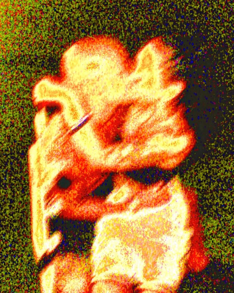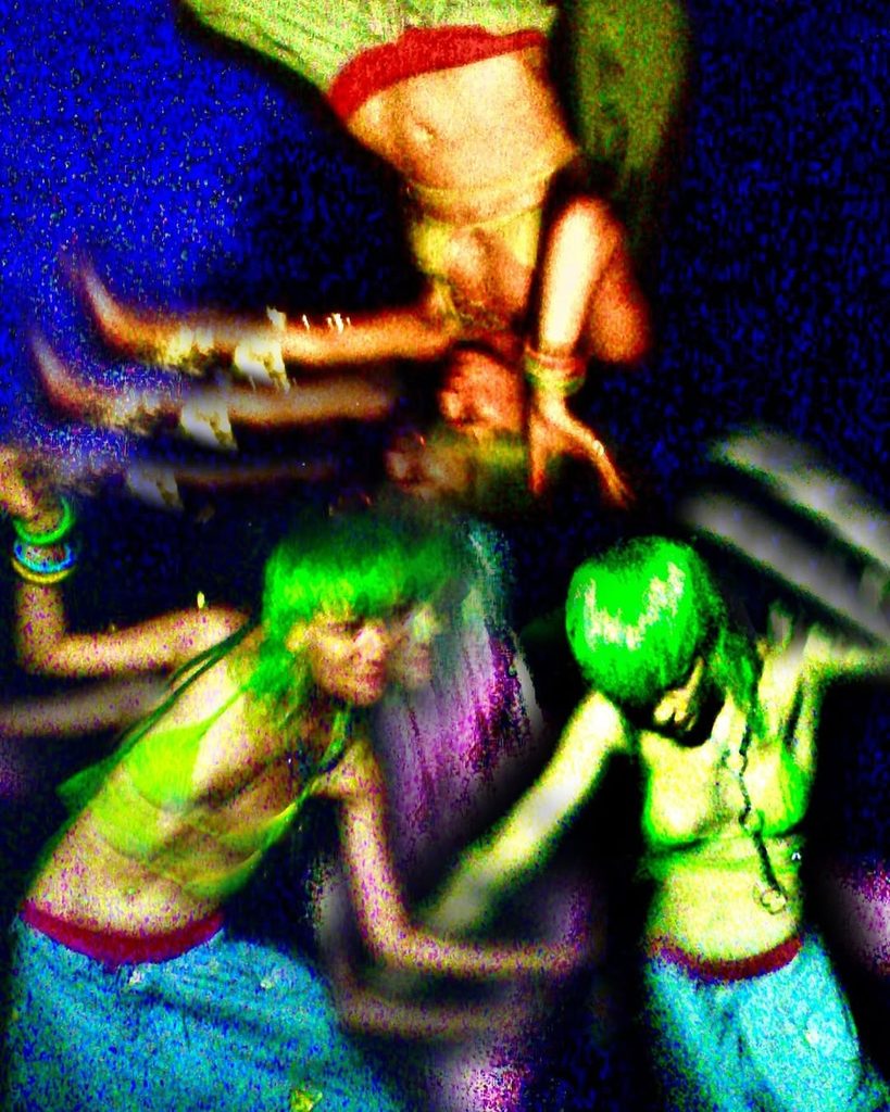 Tra voli pindarici eseguiti con tanto di piroetta carpiata e sorrisi di complicità, io e Gu-… anzi no, io e Nokia Bastardo ricomponiamo il puzzle della sua creazione. Ed è proprio a partire dal nome che iniziamo, in bilico sul fil rouge che piano piano si dipana: “Nokia” perché le foto che scatta ai rave e ai party più autodeterminati di Milano sono fatte col cellulare che la nonna disconosce con tutto il cuore; “Bastardo” perché questo è l’anatema che alcune persone gli urlano a squarciagola quando li assale con il flash dello smartphone per scattare col Nokia (così vecchio, che non ha il flash?!). Dal racconto, me lo immagino come un minatore che irradia con il caschetto gli animali notturni, nascosti in piena vista dalla coltre buia di mamma caverna.