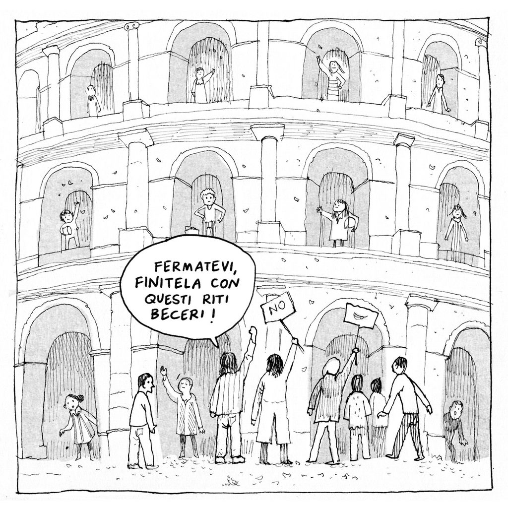 La Roma patinata da cartolina ci annoia da un pezzo e pure quella del degrado a tutti i costi è diventata stucchevole. Ci serviva una piccola ventata d’aria fresca, sottosopra e divertente: una Roma cattivissima e dissacrante, del quarto e quinto tipo, una città riscritta da una distopia dell’assurdo che vorremmo accadesse domani davanti ai nostri occhi: “ti immagini davvero se….”. Ci serviva “Roma Terribile”, una serie di brevi racconti surreali scritti da Eleonora Amianto e disegnati da Simone Tso, che siamo pronti a scommettere diventerà un piccolo culto. «Ci sembrava una sfida interessante creare nuove narrazioni su una città come Roma, così ipertrofica e sempre legata al passato». Ecco allora la quadratura del cerchio: un mix bilanciato di horror da b-movie e ironia surreale, unito a una capacità di capovolgere la narrazione della città che può maturare solo chi ha calcato le sue strade talmente a lungo da potersene distaccare. Appuntamento ogni due settimane (circa) su questa pagina, dove troverete un nuovo episodio dedicato a un luogo iconico della città e dei suoi quartieri.