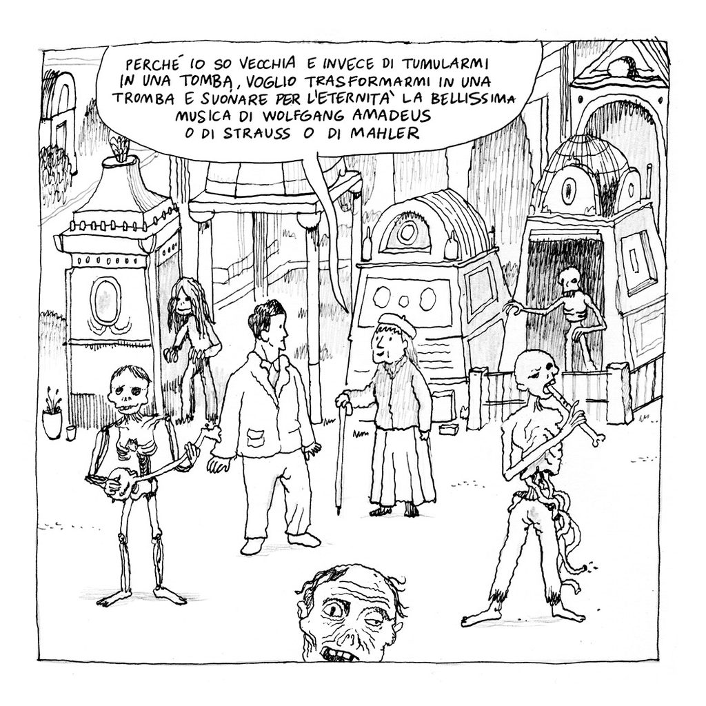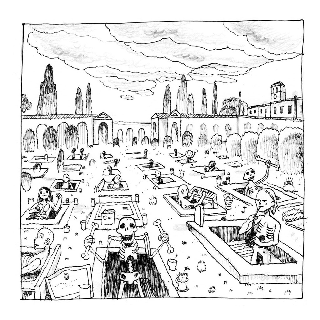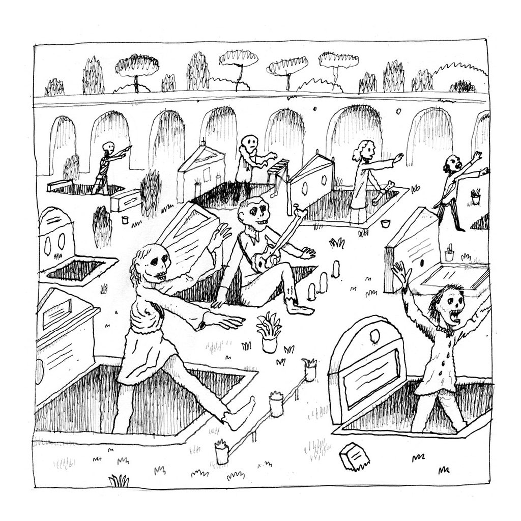Sulla questione del cambiamento climatico si è detto tutto? Sappiamo che ci saranno nuovi deserti, che alcune città saranno sommerse dall’acqua e che i fenomeni atmosferici saranno sempre più violenti, ma nessuno ha preso seriamente in considerazione un problema: in alcune zone della terra prima caratterizzate dall’alternanza stagionale, i festival musicali all’aperto, tradizionalmente estivi, ci potrebbero essere per tutto l’anno. E la musica dei giovani di oggi è un grosso problema, soprattutto per i morti. Perché – questo ancora non lo sapete – ai morti piace sì il silenzio, ma anche la classica, a tal punto che esistono calendari di concerti a tomba scoperta. Si dice che una volta degli incauti promoter organizzarono un festival trap a piazzale del Verano a San Lorenzo proprio in concomitanza di una di queste esecuzioni. Be’, successe che i morti si incazzarono sul serio ed uscirono dai cancelli…