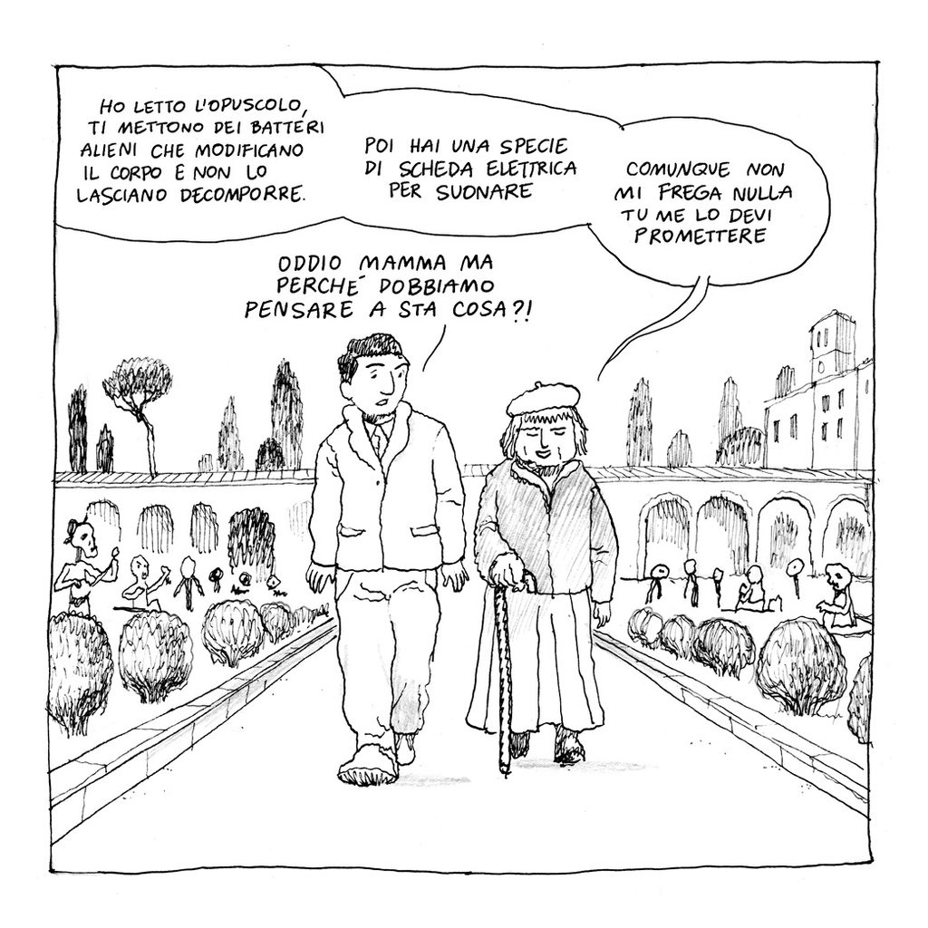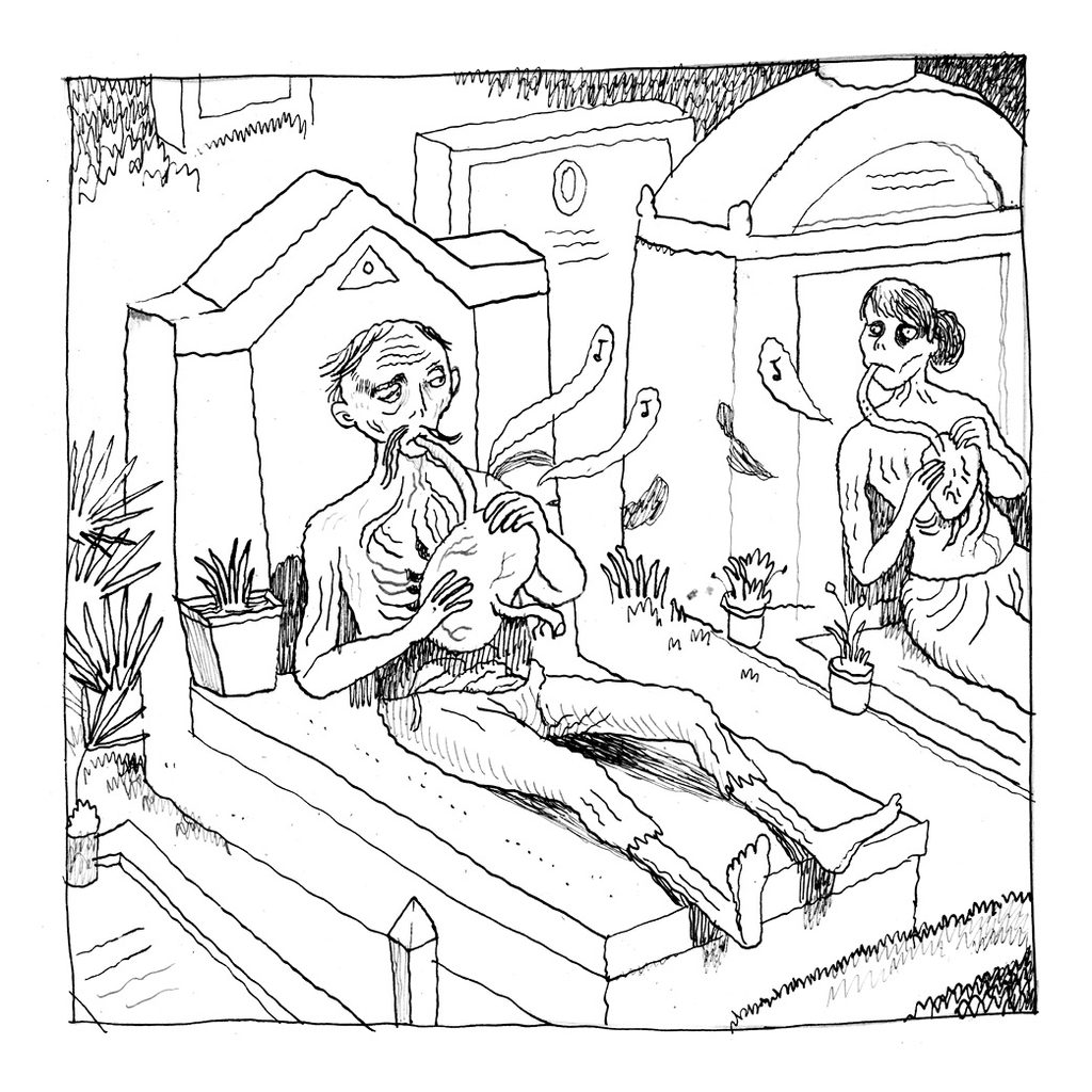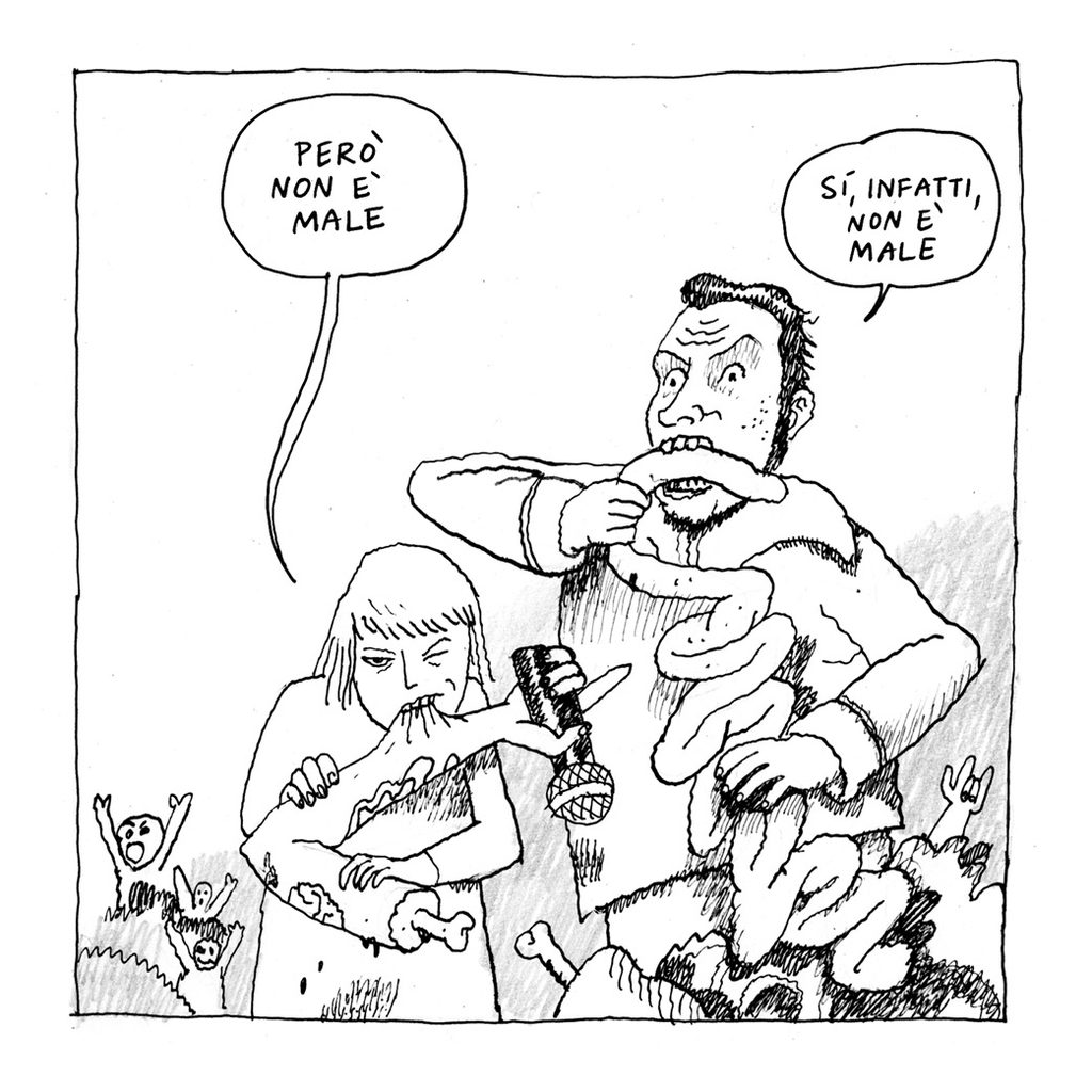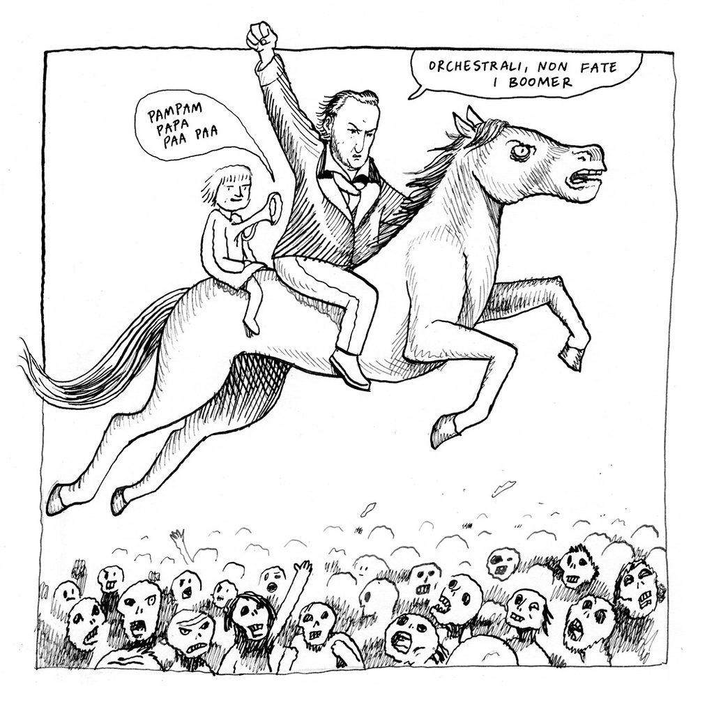 Sulla questione del cambiamento climatico si è detto tutto? Sappiamo che ci saranno nuovi deserti, che alcune città saranno sommerse dall’acqua e che i fenomeni atmosferici saranno sempre più violenti, ma nessuno ha preso seriamente in considerazione un problema: in alcune zone della terra prima caratterizzate dall’alternanza stagionale, i festival musicali all’aperto, tradizionalmente estivi, ci potrebbero essere per tutto l’anno. E la musica dei giovani di oggi è un grosso problema, soprattutto per i morti. Perché – questo ancora non lo sapete – ai morti piace sì il silenzio, ma anche la classica, a tal punto che esistono calendari di concerti a tomba scoperta. Si dice che una volta degli incauti promoter organizzarono un festival trap a piazzale del Verano a San Lorenzo proprio in concomitanza di una di queste esecuzioni. Be’, successe che i morti si incazzarono sul serio ed uscirono dai cancelli…