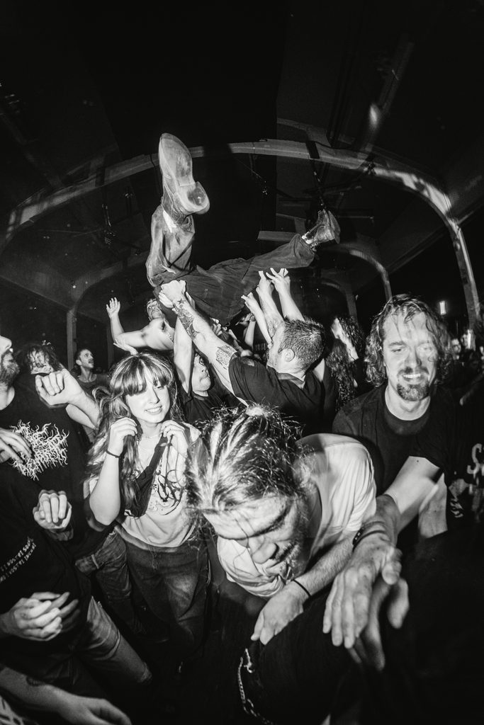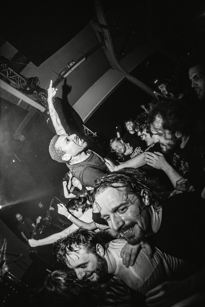 La pandemia è stata una sorta di spartiacque, una ferita profonda che ha rimesso in discussione quel modello di vita che ora non diamo più così tanto per scontato. E una volta passata la tempesta, terminate le serrate e dissipate le minacce di lockdown, quel calore sepolto sotto le braci si è riacceso, le band hanno ripreso a calcare i palchi, e il movimento sta conoscendo una nuova ondata. È una grande famiglia nomade che si accalca nei pressi degli stage, che si spreca sudando e urlando nei rituali non scritti della controcultura hardcore. Stage diving, pit, crowd, pogo, scream, non sono solo lemmi che indicano delle pratiche di presenza e di gestione dello spazio, ma sono organigrammi della trasversalità e della solidarietà. Sono persone che si organizzano e processano la realtà sotto lenti laterali, con filtri propri, con mezzi peculiari. La rabbia e la nostalgia, la tristezza e l’oppressione, l’esigenza del riscatto si innescano come arsenale potenziale tratto da un manuale sui rudimenti della sopravvivenza. È una modalità di partecipazione dal basso che non è replicabile e ha delle categorie tutte sue molto difficili da descrivere a parole. Un movimento che è difeso da tutte e tutti perché tutte e tutti lo sentono come proprio, qualcosa che si erige nel deserto della città, e colleziona frammenti di dolore di ognuno e ne fa opere d’arte a cui non si può dare un valore in quanto merce, il valore di scambio si azzera perché zero per zero è sempre zero.