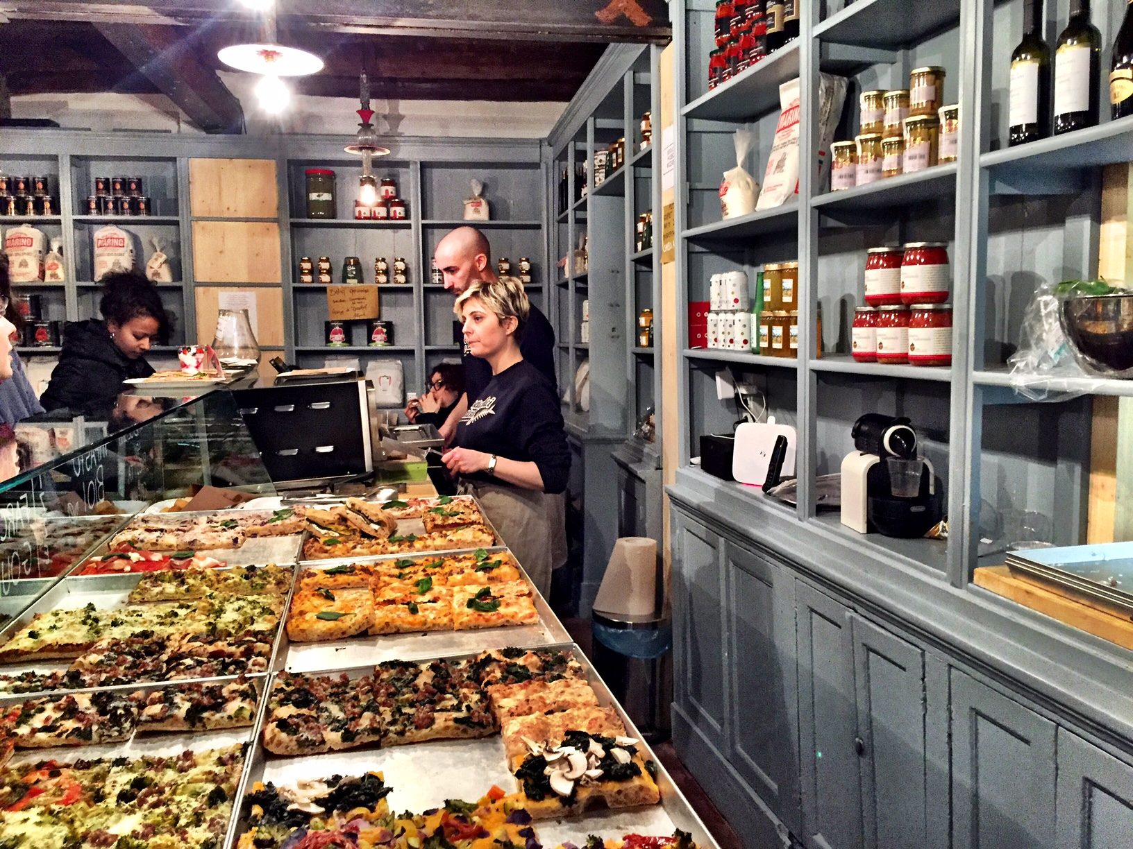 Pizze in teglia e tonde con impasto di farine semintegrale a lunga lievitazione, “gusti” con l’imbarazzo della scelta e una miriade di condimenti stagionali, molti dei quali veg (tipo quella con crema di fagioli e cicoria o zucca, verza e patata viola).