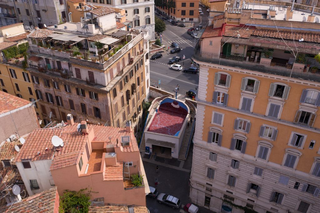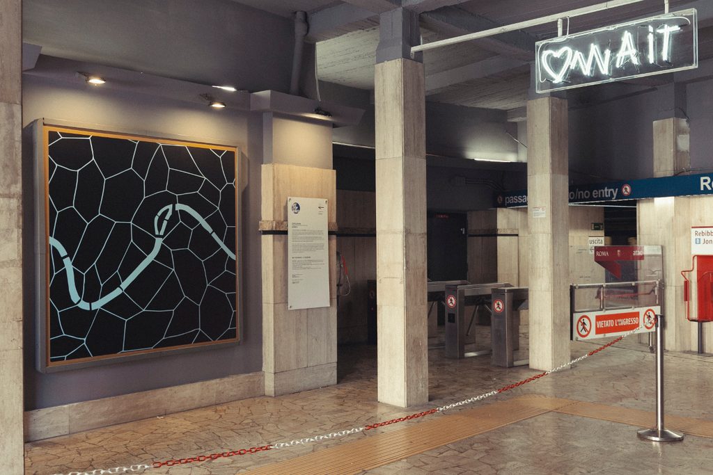 Quella di Cavour è una delle stazioni più strane di Roma, con due ingressi minuscoli su altrettanti lati della strada e una piccola struttura in cemento, a metà tra la terrazza e la tettoria, a coprire solo una di esse. Proprio questo “non spazio” sarà per un mese protagonista dell’iniziativa Art Stop Monti, realizzata da NuFactory in collaborazione con Atac.