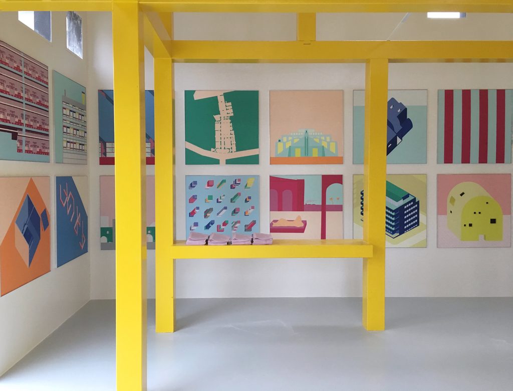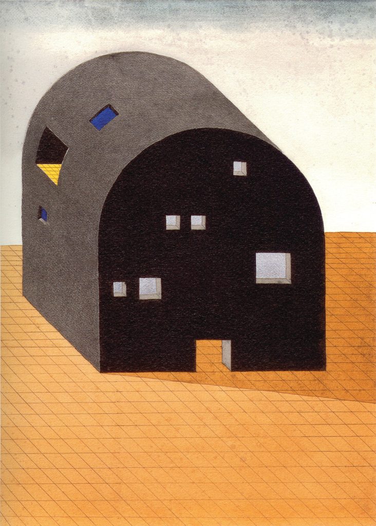 venivano descritte altrettante architetture possibili. Una sequenza di viste molto colorate, dipinti a pastello e assonometrie di edifici e spazi che in qualche modo ci raccontano un’idea di architettura. Una costellazione di progetti, spesso architetture isolate e astratte, che sembra formata da riflessioni e da ricordi personali, luoghi visitati e fotografati