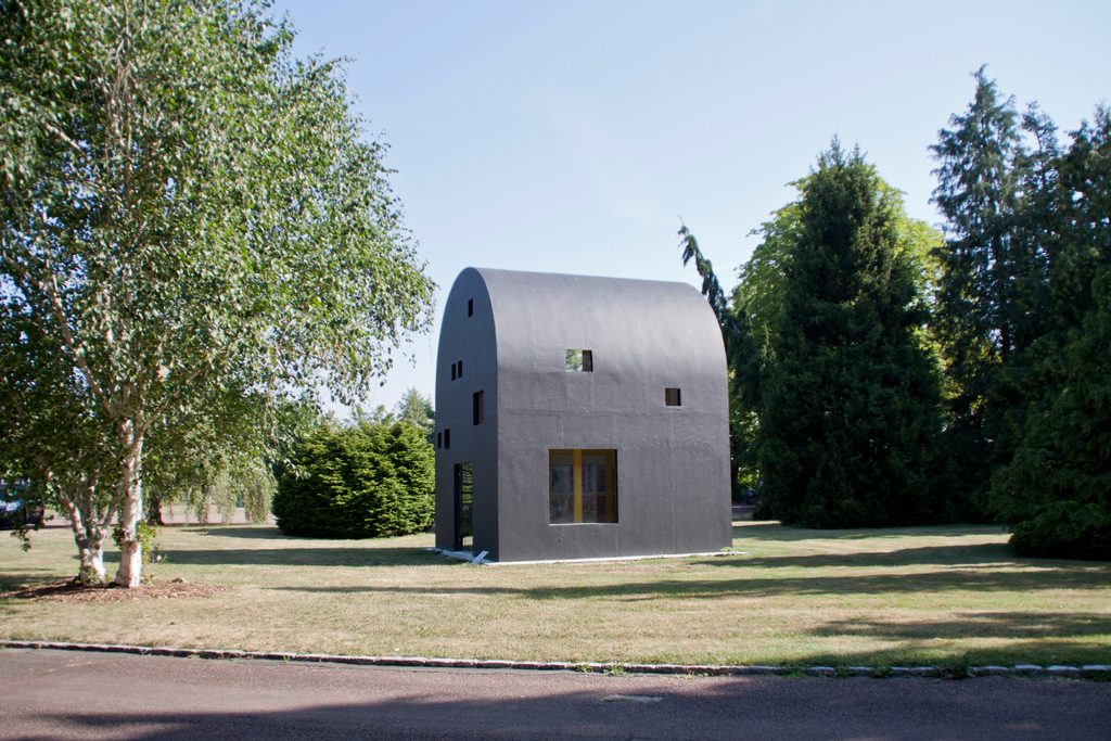 L’idea è nata diversi anni fa, in occasione della Biennale di Architettura di Venezia curata da David Chipperfield nel 2012 dal titolo “Common Ground”. Con la nostra rivista, San Rocco, abbiamo realizzato un’istallazione sull’idea di collaborazione in architettura, dando vita a un grande modello di quell’architettura magicamente descritta dal disegno di Sottsass e immaginando il suo interno. Quel disegno è un’assonometria, svela solo le due facciate esterne di un misterioso volume nero. Dopo un po’ di tempo abbiamo iniziato a realizzare una serie di disegni, immagini e fotografie al modello. Abbiamo quindi documentato tutti i ragionamenti, tutti gli aspetti della nostra proposta per completare idealmente quell’architettura così ambigua e imperscrutabile. Con il passare del tempo era addirittura nata la malsana idea di comprare un terreno e costruirla. In seguito Abdelkader Damani, il direttore del Frac Centre di Orléans, durante una sua visita a Roma ha visto i disegni e il modello del progetto e questi coincidevano perfettamente con il tema della prima Biennale d’Architettura di Orléans che stava organizzando proprio in quel periodo: “Walking Through Someone Else’s Dream”. Il progetto esprimeva in maniera molto esplicita, quasi letterale, questo tema ed è quindi nata l’idea realizzare questo desiderio, questo sogno.
