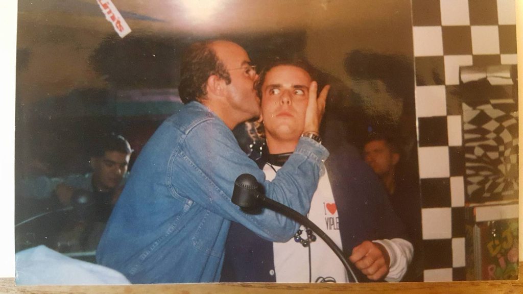 In 30 anni di consolle ho sempre avuto il culo di trovarmi al momento giusto nel posto giusto, con l’organizzatore giusto. Appena arrivato a Milano ho avuto il piacere di diventare resident del privè gay friendly del The Base di via Natale Battaglia, punto di riferimento della notte di quegli anni.