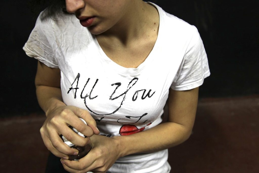 “Crepacuore” nasce dall’incontro con l’attrice Diletta Acquaviva. È un monologo che ha l’impronta della sua terra d’origine, del suo dialetto e della sua fisicità. Avevamo partecipato a una delle edizioni di MarteLive ed essendo state premiate nella nostra categoria ci venne data la possibilità di portare lo spettacolo in diversi luoghi e di confrontarci con il pubblico. Eravamo alle prime esperienze e il ricordo di quegli anni e di quel momento specifico, prima e dopo la messa in scena, è quello di un lancio verso qualcosa di non definito: non ci importava dove saremo finite o come sarebbe andata, avevamo solo voglia di fare. E questo non è mai cambiato. “Crepacuore”, però, non è stato il nostro primo approccio con il palco e con il pubblico. Contemporaneamente alla creazione dei primi lavori ci esibivamo con gruppi di performer all’interno delle serate di Amigdala, che ci hanno permesso di lavorare in luoghi assolutamente non convenzionali dal punto di vista teatrale e in relazione a un pubblico non sempre pronto alle nostre incursioni. Sono stati anni che hanno segnato la nostra creazione, il modo in cui ci rivolgiamo a chi ci guarda, il desiderio di inclusione verso il fuori, l’uscita di scena senza applausi, lo strappo tra chi sta a guardare e chi è guardato. Quegli anni, quelle esperienze fuori dal palco, ci hanno avvicinate a una ricerca che tende a essere orizzontale, dove drammaturgia è musica, parole, gesti, sguardi, video, luci, condivisione tra dentro e fuori.