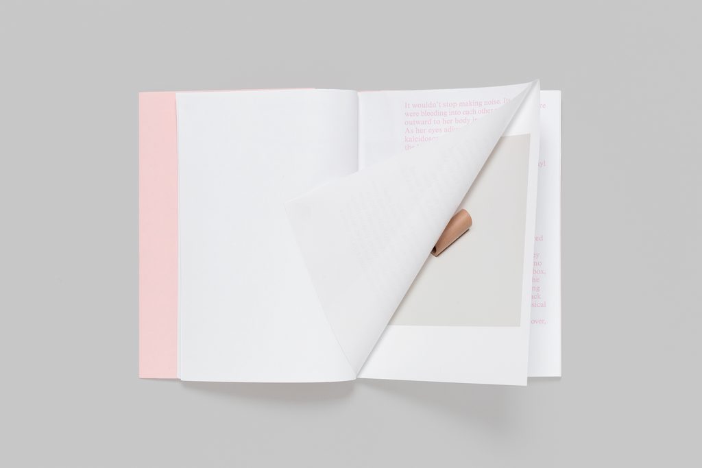 Il rosa è il leitmotiv della serie. Gli strumenti dei prestigiatori che ho selezionato hanno una colorazione che tende a replicare il tono della pelle umana – uno dei grandi crucci nella postproduzione della fotografia commerciale. In realtà, il rosa della copertina e del testo differiscono da quello degli oggetti. È un rosa idealizzato, soprannominato “rosa quarzo”, nonché un colore molto legato alla moda (basti pensare ad Acne). Gli oggetti hanno un aspetto insolito, a tratti repulsivo. Mi piaceva quindi dare al libro un aspetto più seducente, quasi “fetish”. Da qui anche la scelta della carta interna (lucida da un lato, opaca dall’altro) e della stampigliatura del titolo in oro rosato.