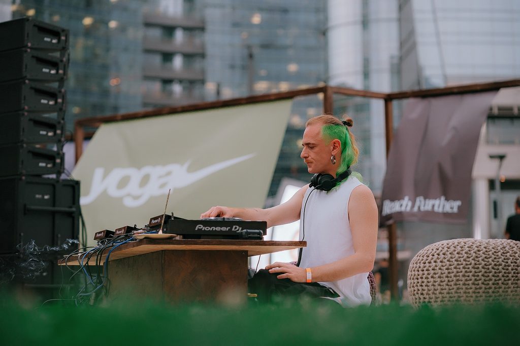 Forse non tutti sanno che il 21 giugno in Groenlandia è festa nazionale. E mentre in Canada si celebrano gli aborigeni, è anche la giornata mondiale della giraffa, oltre a essere il giorno di Sant’Engelmondo di Velsen, monaco, e di Sant’Albano da Magonza, missionario. Ma siccome state leggendo Zero – e non l’edìpeo enciclopedico de La settimana enigmistica – ci basta dire che il 21 giugno di ogni anno, il Sole entra nel segno astrologico del Cancro. Accade attorno alle 15, e da quel momento è estate. E, in aggiunta, è anche il momento giusto per prendersi cura di se stessi, abbandonare il ritmo frenetico della vita metropolitana e ritrovare l’equilibrio, perché dal 2015 si festeggia l’International Yoga Day. Per l’occasione, Nike – che quest’anno spegne 50 candeline – ha organizzato una specialissima sessione di Yoga aperta a tutti. Lo ha fatto a Milano, all’ombra del Bosco Verticale, negli spazi di BAM, il giardino botanico di Isola. Un progetto che continuerà con nuovi appuntamenti, tra yoga, training e running: un regalo alla città per celebrare tanto il viaggio quanto il traguardo, privilegiando il progresso rispetto alla perfezione, facilitando l’accesso allo sport per tutti. A rendere ancor più unica la giornata ci ha pensato MACE, il producer milanese che per l’occasione è stato chiamato a sonorizzare la pratica, per conciliare, tramite il suono, l’unione tra singolo e collettivo, tra l’uno e i molti. Produttore, beatmaker, musicista, dal 2021 tutti lo conosciamo come calamita di talenti, dopo la pubblicazione di OBE – acronimo di Out of Body Experience – il suo primo album dove ha chiamato a raccolta numerosissimi artisti, tra cui Guè, Noyz Narcos, Venerus, Blanco, Rkomi – per citarne alcuni – orchestrando un complesso mosaico della musica italiana contemporanea. Risale a poco più di un mese fa la pubblicazione della sua seconda fatica, Oltre, un disco tutto fatto di musica strumentale, tracce “concettose” – tra sonorità elettroniche e psichedeliche che ricordano Jamie xx e Bonobo – che a giudicare dai titoli ci sono sembrate perfette per una discussione su yoga, sport e spiritualità. Ecco il resoconto della nostra chiacchierata.