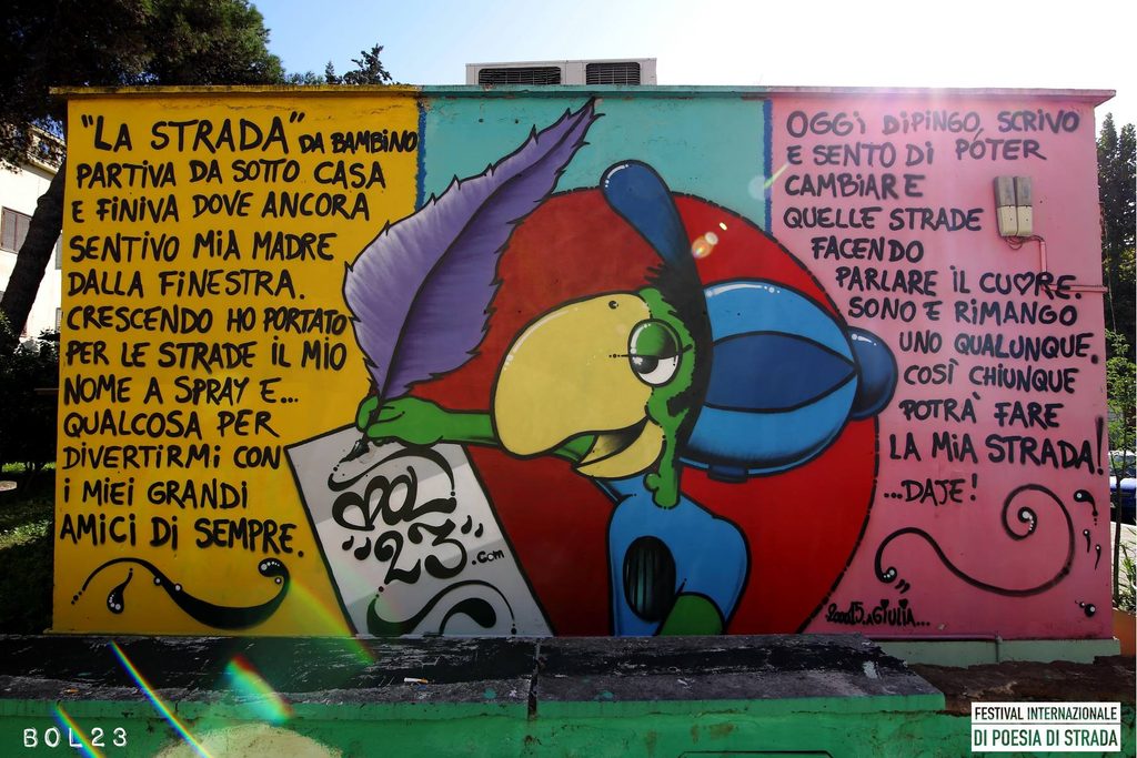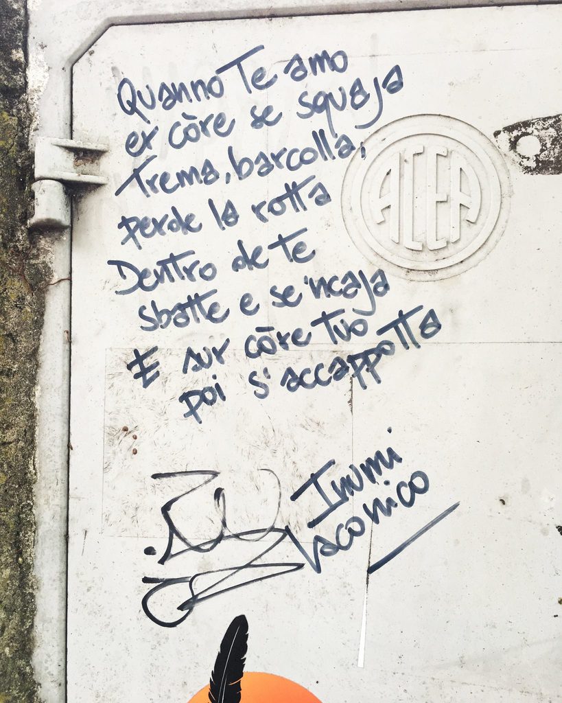 La primissima (e ingenua) poesia l’ha scritta Er Bestia su un muro del Trullo, nel 2010. Ancora è lì, incorniciata come un cimelio!