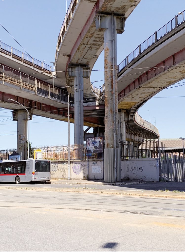 Quando sono rimasta chiusa a casa a Milano durante il primo lockdown non potevo camminare, non potevo stare a Roma, e allora leggevo su Roma. Questo racconto mi ha particolarmente colpito, anche perché Savinio è uno dei miei autori preferiti: racconta la sensazione di essere straniero a Roma passeggiando. Il titolo del libro viene da questo racconto in cui Savinio cita Pitagora che consiglia di non camminare in strade affollate durante la peste. Dato il momento storico, mi sembrava appropriato. Nelle mie foto in realtà non ci sono mai persone, ma, in particolare dopo giugno, da Roma erano scomparsi i turisti e la città era deserta. Il testo di Savinio è in mezzo, a dividere il primo periodo dal secondo. Il sette marzo sono andata a Corviale, da lì in stazione diretta a Milano perché quel giorno per puro caso avevo una cena. Quando la sera ho visto il telegiornale ho capito che sarei rimasta a Milano per un po’. Avevo lasciato tutto a Roma e quando a giugno sono rientrata allʼAmerican Academy per riprendere le mie cose, tutto era rimasto cristallizzato a quella mattina pre lockdown. Quindi ho ripreso esattamente dove avevo lasciato, da Corviale.