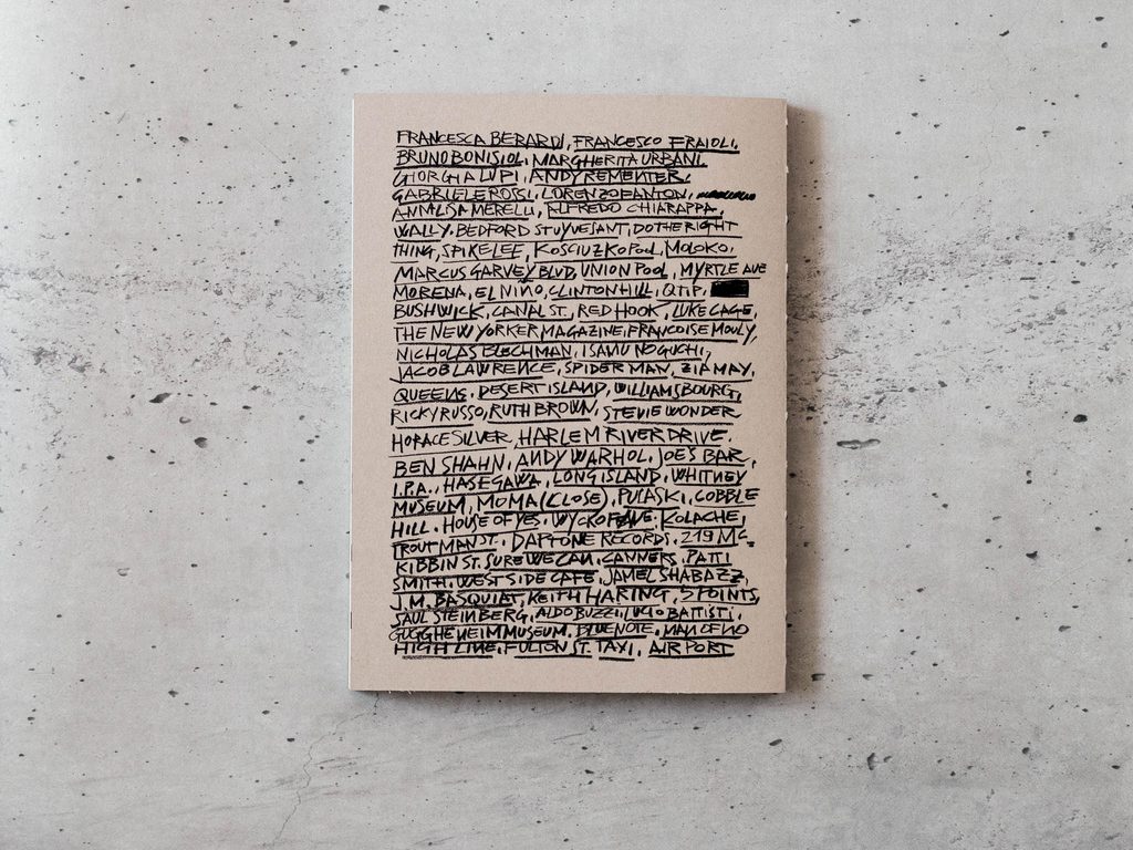“Please! Don’t use Birkenstock®️ if you have an appointment at The New Yorker. Ok?” pensato e realizzato come un taccuino di viaggio per riprodurre le mille anime della Grande Mela, raccoglie sia gli schizzi fatti sul posto che i disegni prodotti, a partire dal ricordo, una volta tornato nel suo studio veneziano.