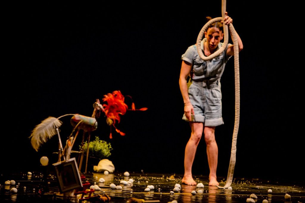 Quattro spettacoli hanno visto la scena durante questo Focus. Quattro artisti molto diversi hanno portato sul palco le loro discipline sotto una nuova forma, non più quella del numero da circo, ma attraverso una storia da raccontare. Clara Storti è Gretel, quella della famosa fiaba, sulla scena costruisce un immaginario quotidiano, fatto di piccoli gesti inusuali come prendere la tazzina con i piedi o portare oggetti sulla testa, poche frasi in gramelot ed è fatta, siamo immediatamente trasportati dentro il suo mondo. È uno spettacolo di emozioni, il pubblico vive con Gretel il suo dispiacere per la perdita della casa, il suo viaggio e le sue avventure. Ad un certo punto del suo cammino ecco una casa sull’albero e come arrivarci se non tramite una corda? È qui che inizia la magia, Gretel si arrampica e vola con una semplicità e leggerezza disarmanti. Clara Storti è riuscita ad integrare un numero aereo in una favola la stessa cosa l’ha fatta Fabrizio Solinas, ma con la giocoleria. Lo spettacolo Little Garden di Fabrizio ripercorre una storia dell’evoluzione degli animali, infatti si trasforma da rettile, a dinosauro, a uccello, a mammifero, a scimmia, a uomo. Una drammaturgia di versi selvatici con tre palline arancioni lo aiutano in queste sue metamorfosi. La cosa più bella è che si crea un vero dialogo di versi con il pubblico, specialmente con i bambini che gli rispondono e insieme creano il nuovo testo: sono trenta minuti di divertimento e risate di pancia. Elena Burani con Piume porta in scena l’immagine dello sfinimento e della resa. La fragilità è la base dello spettacolo mostrata sia dal corpo che si scompone, sia dalle azioni che non riescono a compiersi. Quella di Elena è una ricerca del tragicomico. Su questa scia di instabilità si inserisce anche lo spettacolo di Valentina Cortese dal titolo Lento e violento. In questo caso è l’instabilità del linguaggio e la decostruzione del testo che portano ad un cambio di ritmo, ad una rupture. Lo spettacolo si presenta come una possibile lezione di musica per poi trasformarsi continuamente in altro, è intriso di magia non impossibile, ma altamente improbabile.