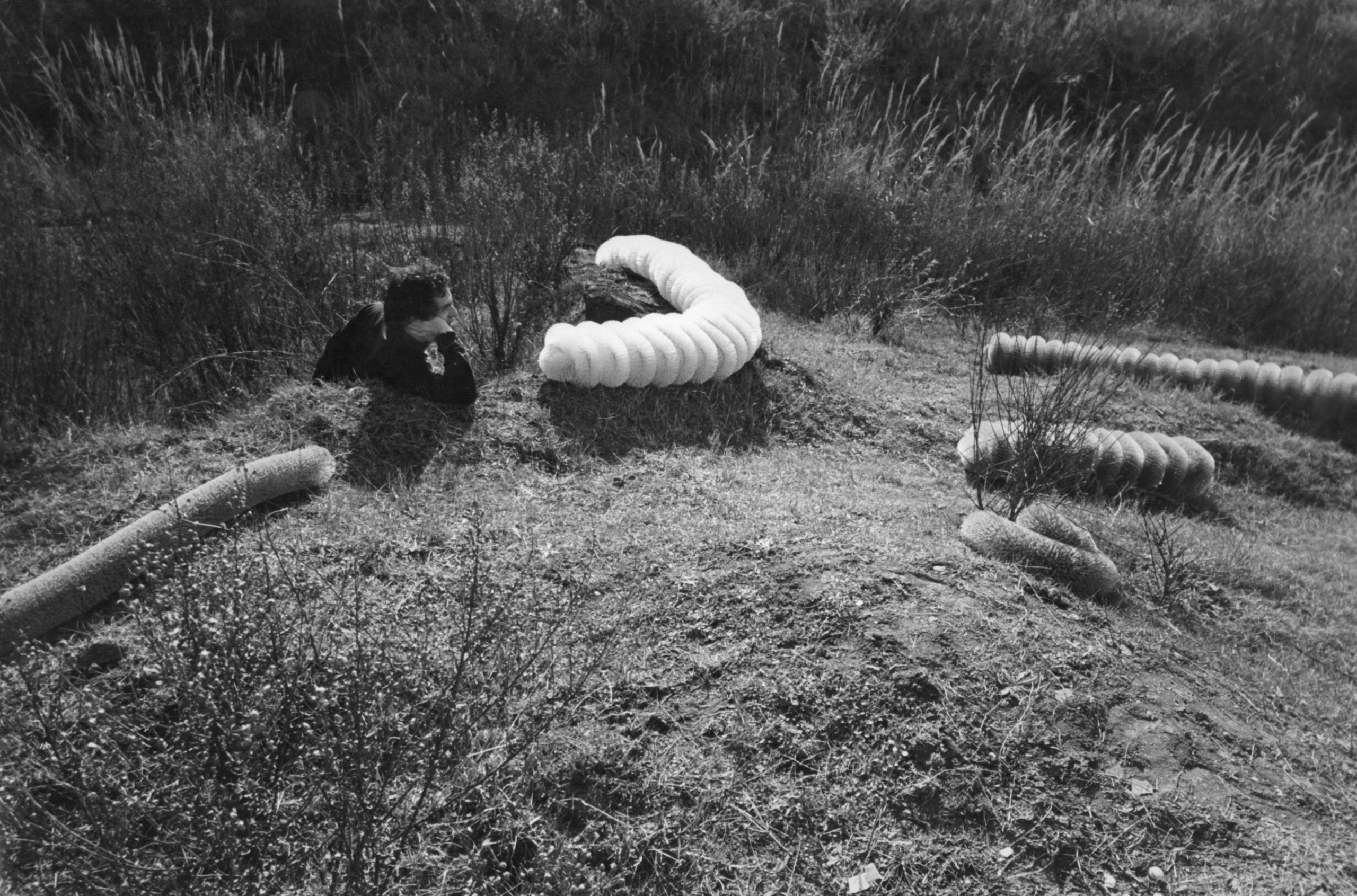 Pino Pascali, artista esibizionista: così è come lo presenta Mark Godfrey, il curatore di quest’ampia retrospettiva dedicata all’artista barese in Fondazione Prada. Qui Pino Pascali è esibizionista per la sua capacità di creare con le proprie opere ambienti coinvolgenti seppure temporanei, e per aver saputo individuare – ben prima che si potesse parlare a buon diritto di società delle immagini – dell’importanza dell’aspetto grafico e di comunicazione pubblicitaria dei suoi lavori, dedicandosi a collezionare e diffondere scatti delle sue mostre prima e dopo l’allestimento.