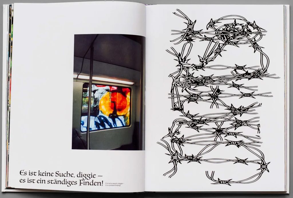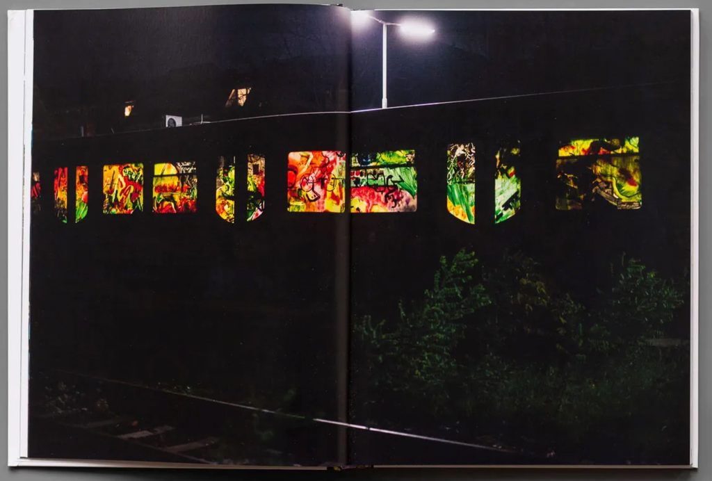Il libro Moving Cathedrals (Hitzerot) indaga una serie di dipinti astratti collettivi eseguiti sulla S-Bahn di Berlino: un processo a più mani in cui la fiducia reciproca sospende l’ego individuale generando “beautiful moments of chaos”. Il risultato sono composizioni che evocano mosaici e rosoni, vere cattedrali in movimento che sorprendono nella routine dei pendolari. In mostra il progetto editoriale dialoga con dettagli fotografici dei treni, trattati come dipinti e con sculture in plastilina che traducono in oggetto tangibile l’astrazione dei dipinti.