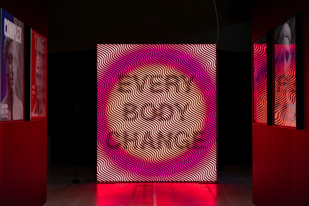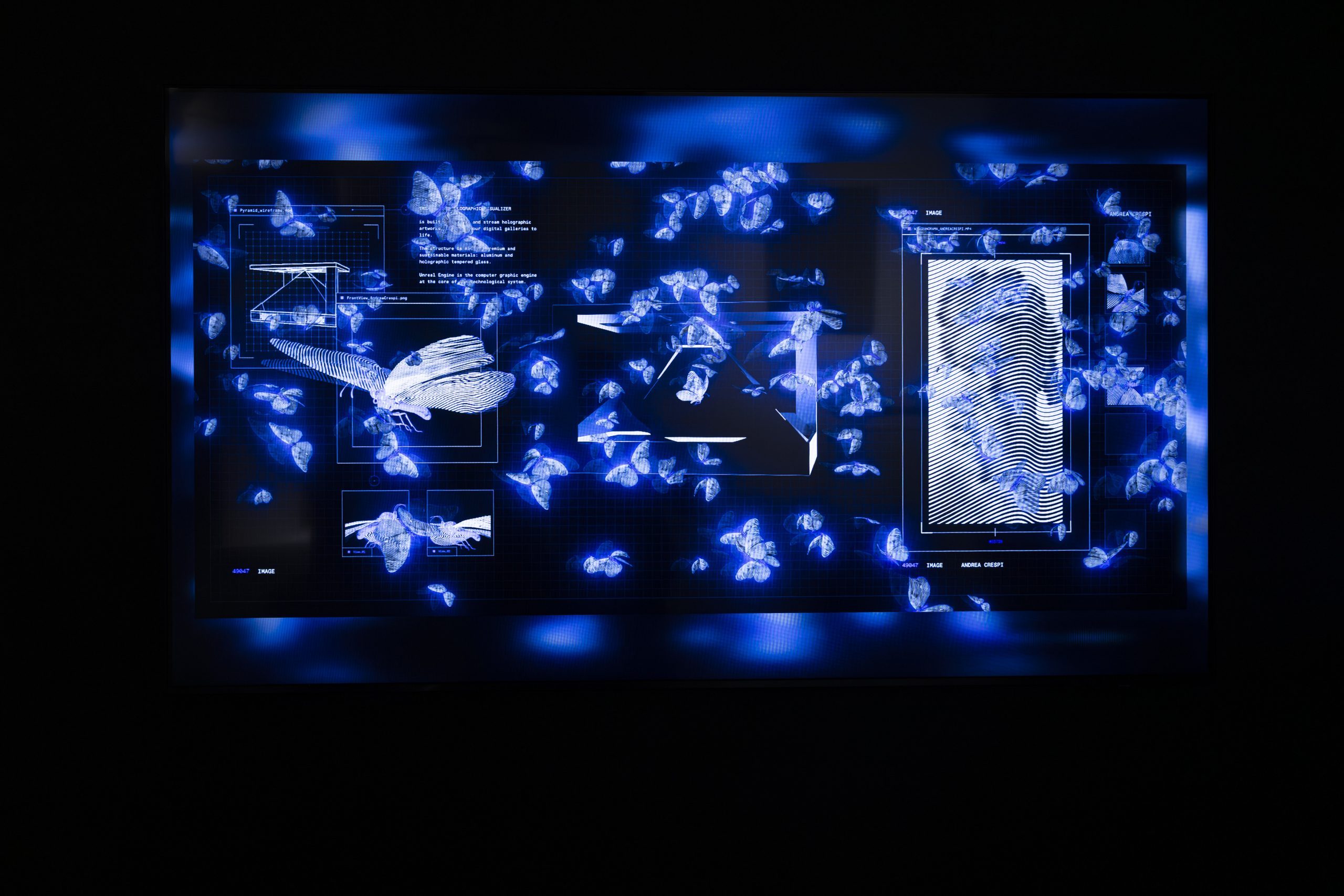 Tra le opere esposte, Future Reflections condensa molti dei temi della mostra. L’installazione utilizza superfici specchianti disposte su tutte le pareti per frammentare e ricomporre l’immagine del visitatore. Superfici, riflessi e ripetizioni generano una percezione “non stabile”: la visione cambia in base al movimento, alla luce e alla presenza degli altri. Il pubblico non osserva da fuori ma diventa parte del dispositivo visivo.