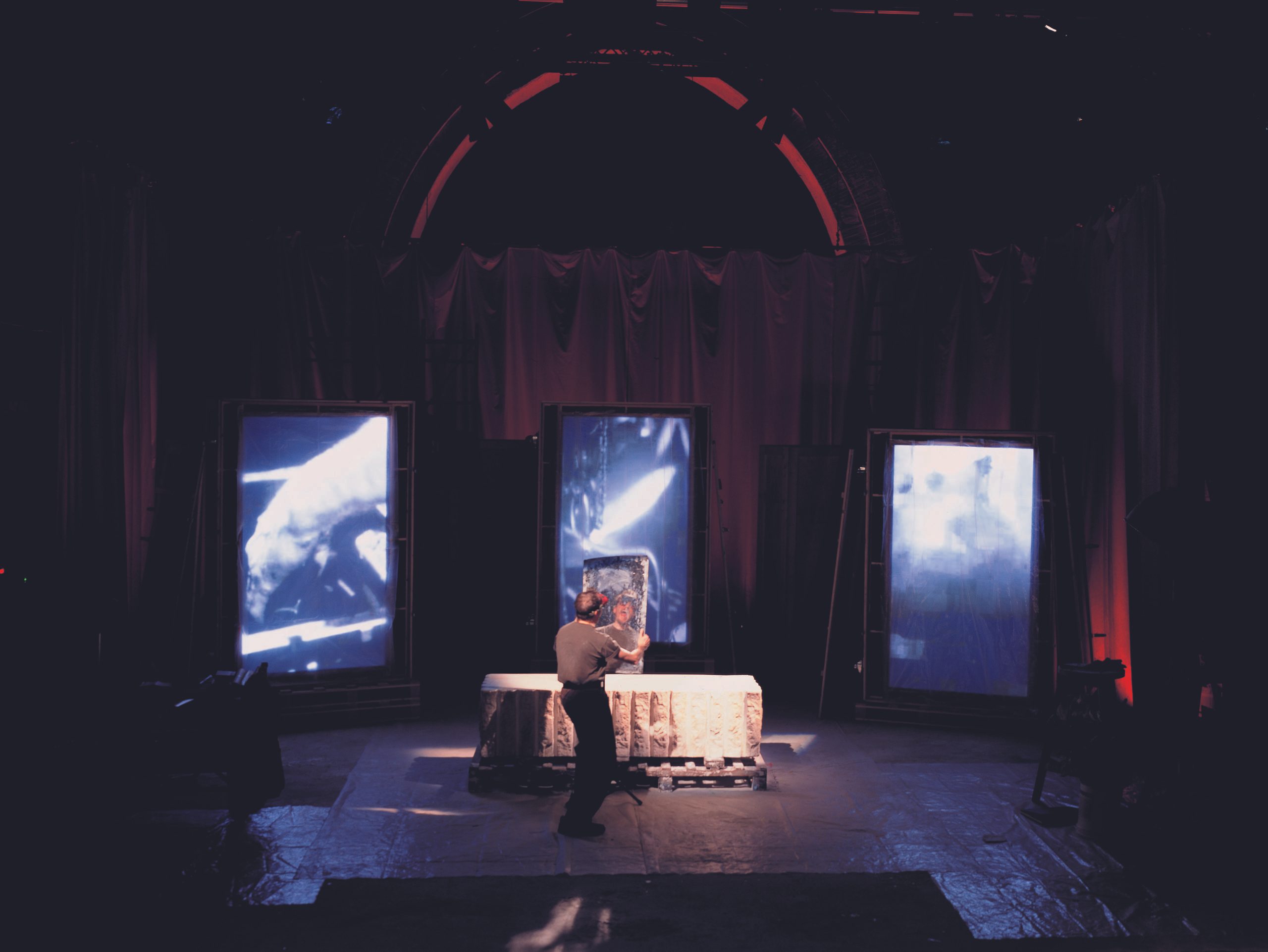 Un monologo ambientato in una sola giornata, il 3 agosto 1667, nello studio dello scultore, pittore e architetto Gian Lorenzo Bernini, la massima autorità artistica della Roma barocca. Al centro della drammaturgia, composta da Marco Martinelli e interpretata da Marco Cacciola, la rivalità dell’artista con il geniale architetto ticinese Francesco Borromini. Ma, inaspettata, giunge la notizia del suo suicidio e la furia di Bernini si tramuta in sincera pietas ed egli giunge a riconsiderare l’opera del collega, riconoscendone l’alto valore. Attraverso una drammaturgia in cui la voce monologante dell’attore e quella di Bernini si rincorrono e sovrappongono, senza soluzione di continuità, a generare sulla scena, presenze, figure e ricordi come scolpendo nel vuoto, il testo di Martinelli ci mostra un Seicento che parla di noi, sospeso tra il secolo della Scienza nuova e l’attuale imbarbarimento, sempre più incombente.