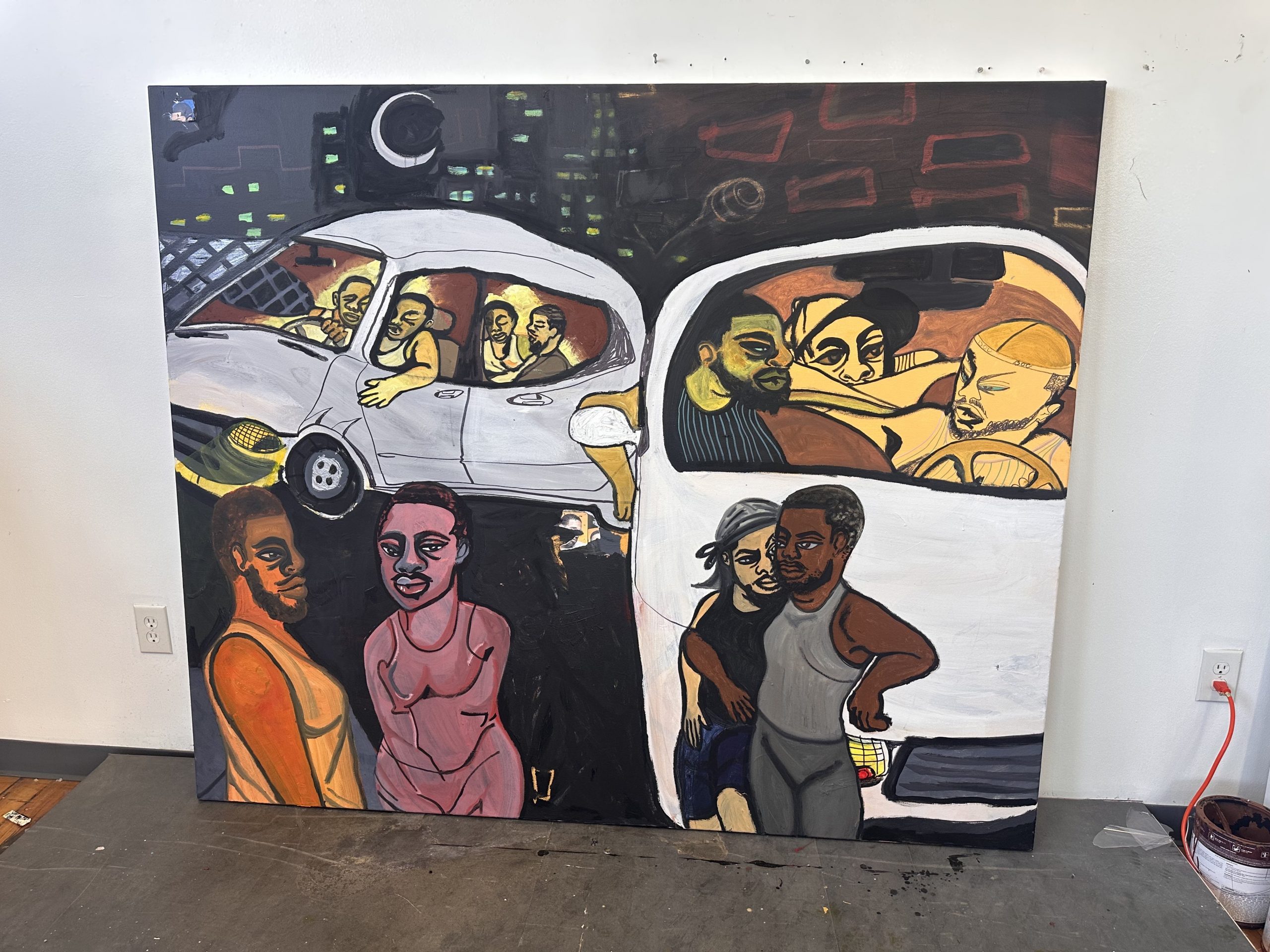La prima personale italiana dell’artista americano trasforma la galleria in interni domestici – soggiorno, camera, cucina, bagno – dove figure queer nere vivono momenti quotidiani. Spazi vivi e imperfetti che diventano paesaggi interiori.