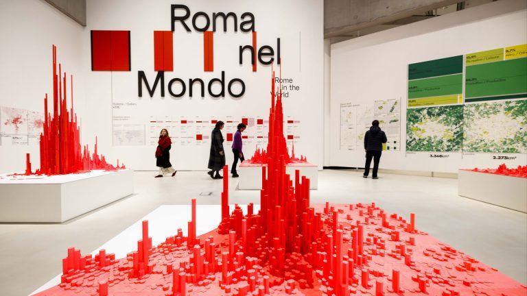 Attraverso proiezioni e infografiche, un modello su larga scala di Roma illustra ciò che si cela sotto le dinamiche spaziali, ambientali, sociali ed economiche di una città unica. A cura di Ricky Burdett.