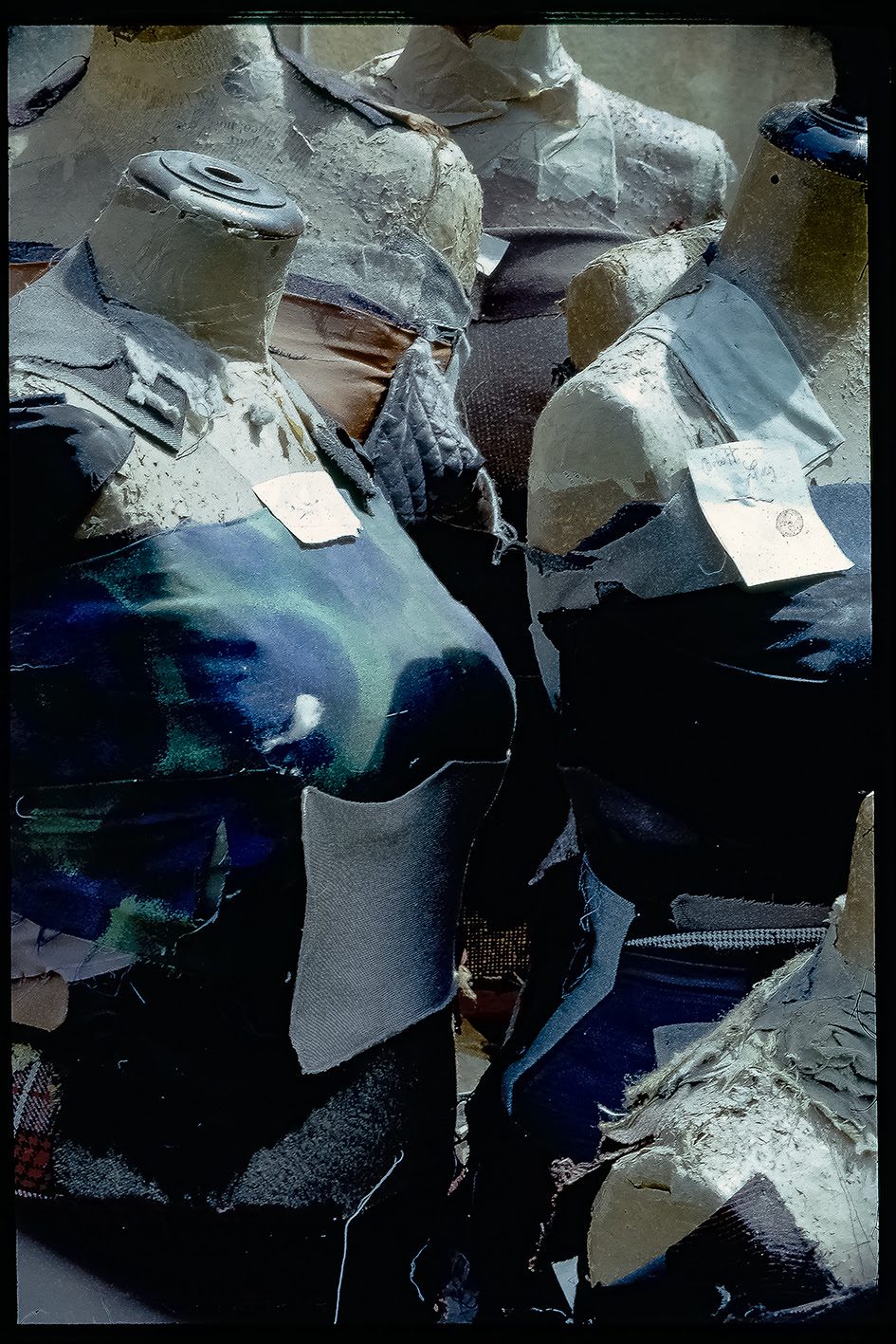 Scrive Ascanio Kurkumelis: “nel 1972 Nino Migliori realizza una serie di fotografie a colori a dei manichini di legno abbandonati. Migliori è attratto dalle stratificazioni della materia, dai ritagli di tessuto di diverse cromie e tipologie, che, come lembi di pelle, tracciano una successione nel tempo, di differenti abiti, storie e identità. Questo lavoro inedito si concentra sul tema della trasformazione e del corpo, inteso come territorio in divenire, aperto al cambiamento”.
