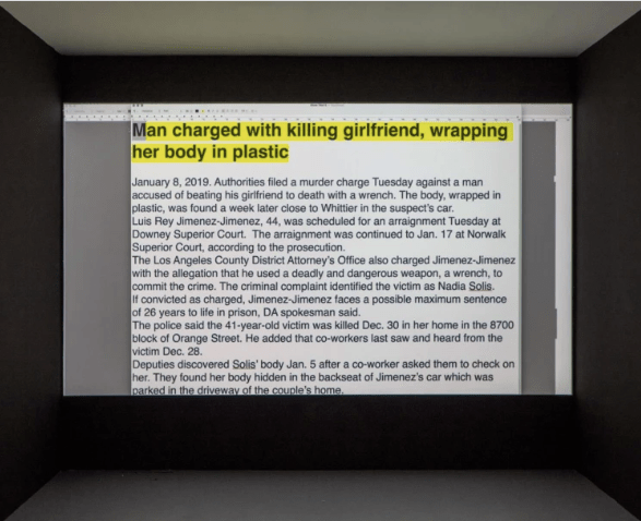 In Reversal Exercise (2024) vediamo lo schermo di un computer e osserviamo un cursore che cambia in tempo reale il genere nelle cronache sui femminicidi. Maschile diventa femminile, carnefice diventa vittima e viceversa.