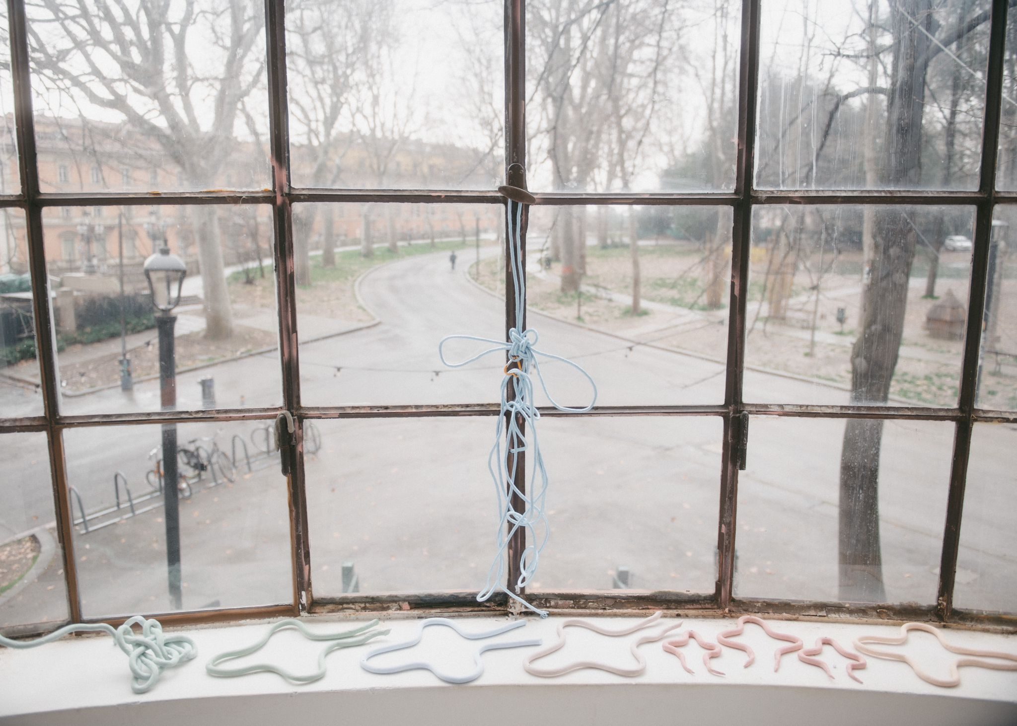 Durante la residenza, Sara Cortesi ha sviluppato una ricerca sul nodo cinese come forma scultorea autonoma, sottraendolo alla funzione ornamentale per indagarne la complessità materiale e archetipica. Attraverso la realizzazione di nodi costruiti con materiali differenti, in dialogo con l’ecosistema del parco, l’artista esplora come il gesto dell’annodare possa tradurre relazioni, tensioni e connessioni in forme visibili, trasformando questa struttura tradizionale in un dispositivo aperto tra memoria, materia e interpretazione contemporanea.