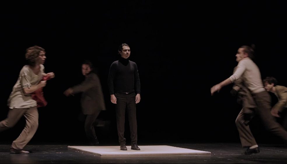 Al centro della scena, una pedana di legno sospesa, retta da braccia umane. Nello stesso spazio si muove, solitario, visionario, Pier Paolo Pasolini, in eterno dialogo e scontro con la struttura del suo tempo. Regia di Valentina Cognatti.