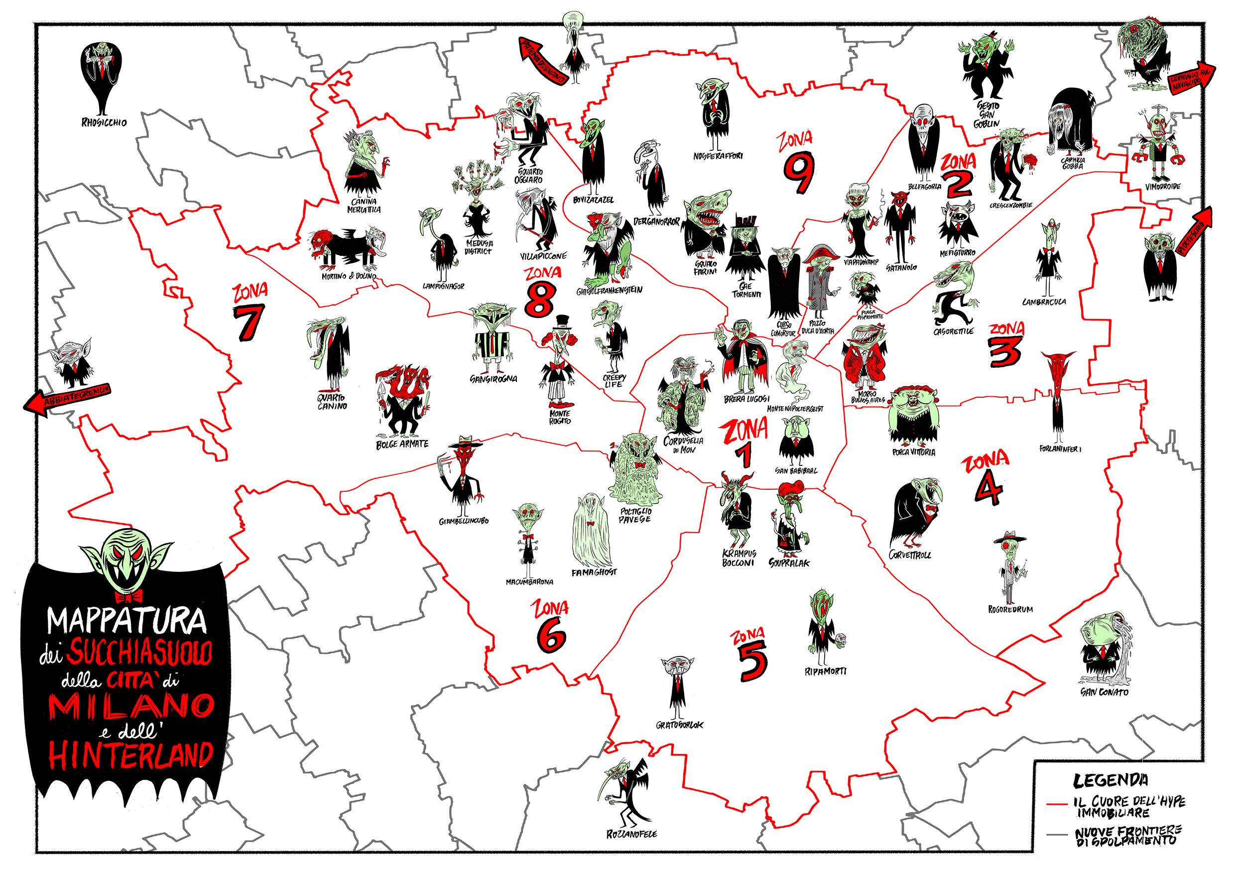 La serie illustrata ha anticipato di qualche mese le recenti inchieste sull’urbanistica che hanno sconvolto la città di Milano. Ma dove vivono i Succhiasuolo? Come si può debellarli, se i paletti di frassino non