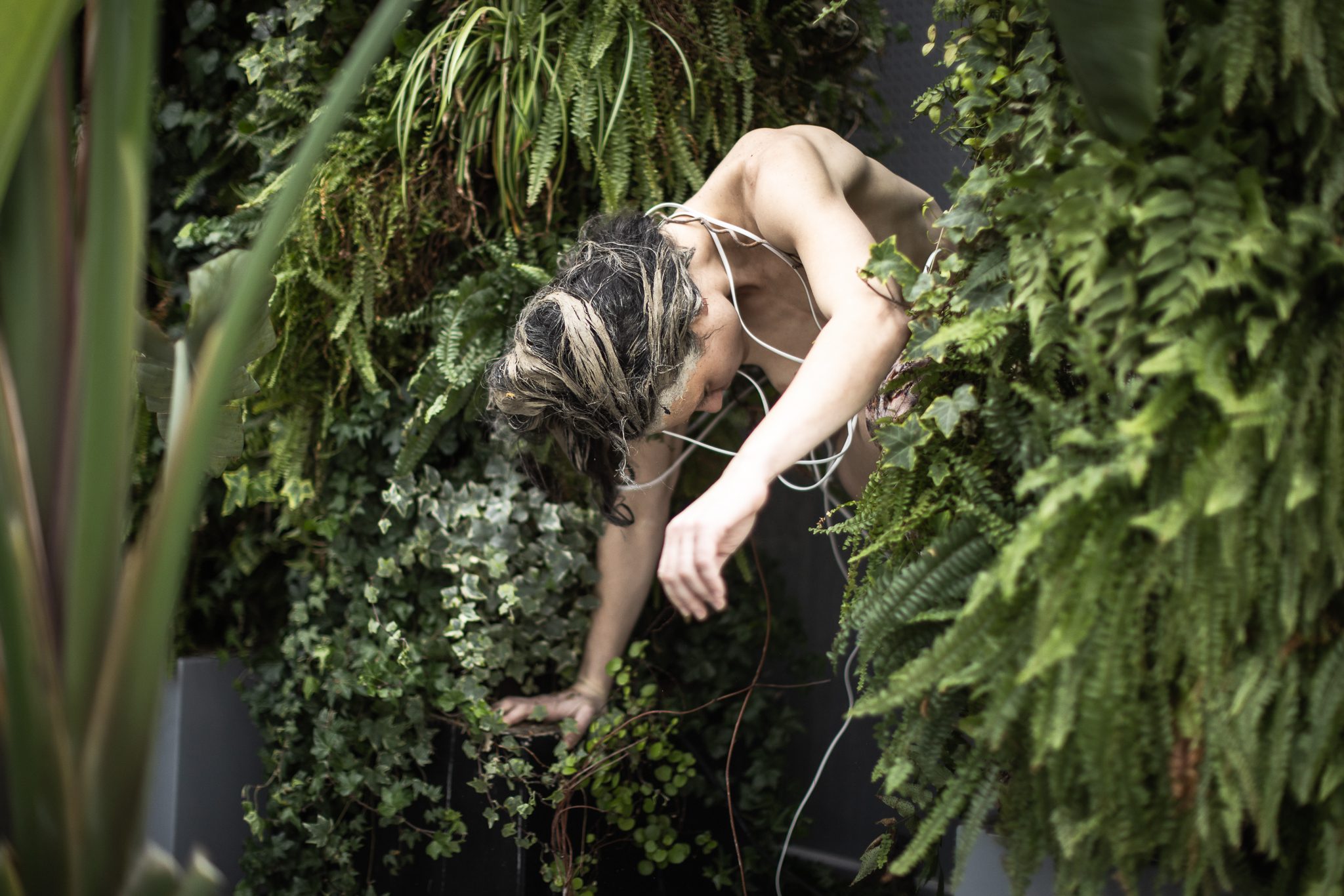Il pubblico entra nello spazio accolto da una figura liminare e si trova davanti a una mostra inattesa, una serie di teche illuminate, simili a quelle dei musei di storia naturale. In ogni teca vive una creatura botanica, classificata come esemplare.