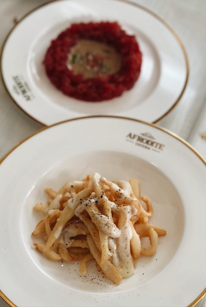 Dopo La Gioia, Osteria Serafina e Al Baretto San Marco, Osteria Afrodite è il nuovo progetto di Redi Shijaku (La Gioia Collection) inaugurato a novembre 2024 a due passi da Città Studi che incarna l’idea di “Nuovo Classico Italiano”: piatti ispirati alla tradizione, in un ambiente caldo e accogliente i cui interni evocano l’atmosfera delle ville italiane degli anni ’80.