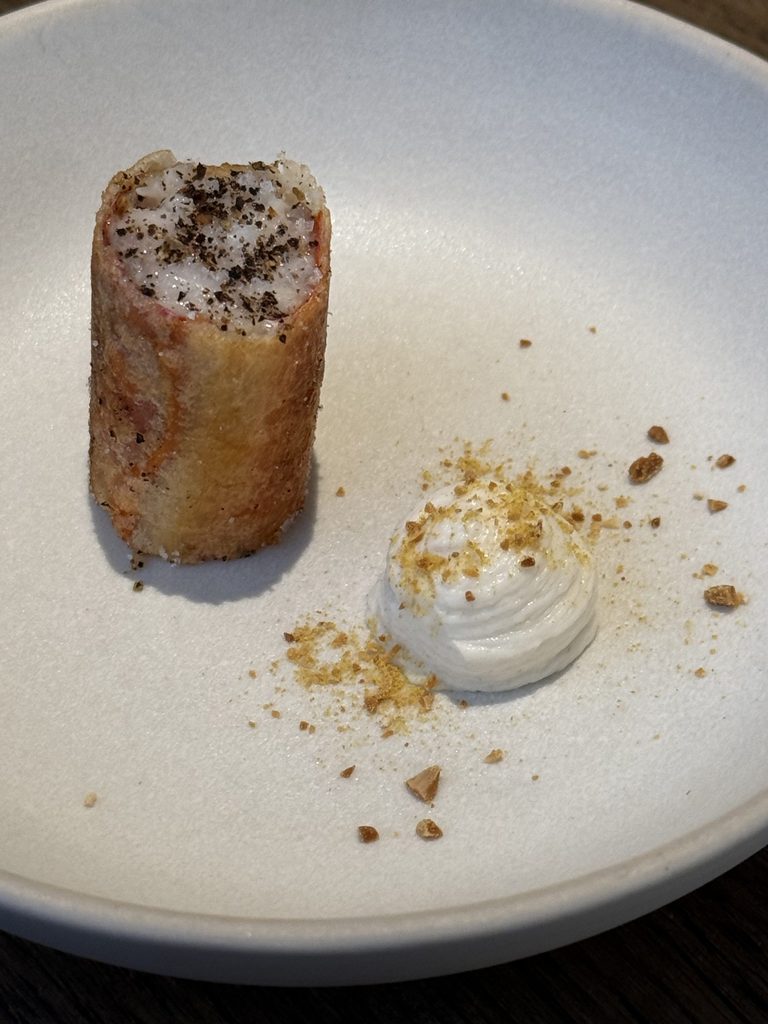 C’è una dimensione quasi atmosferica nell’esperienza da Abba: un cielo attraversato da nuvole leggere che improvvisamente si aprono lasciando filtrare fasci di luce. Così sono i contrasti nei piatti — una nota acida che illumina, una consistenza più profonda che fa da contrappunto, una sfumatura amara che resta in sottofondo. Nulla è gridato. Tutto è misurato.