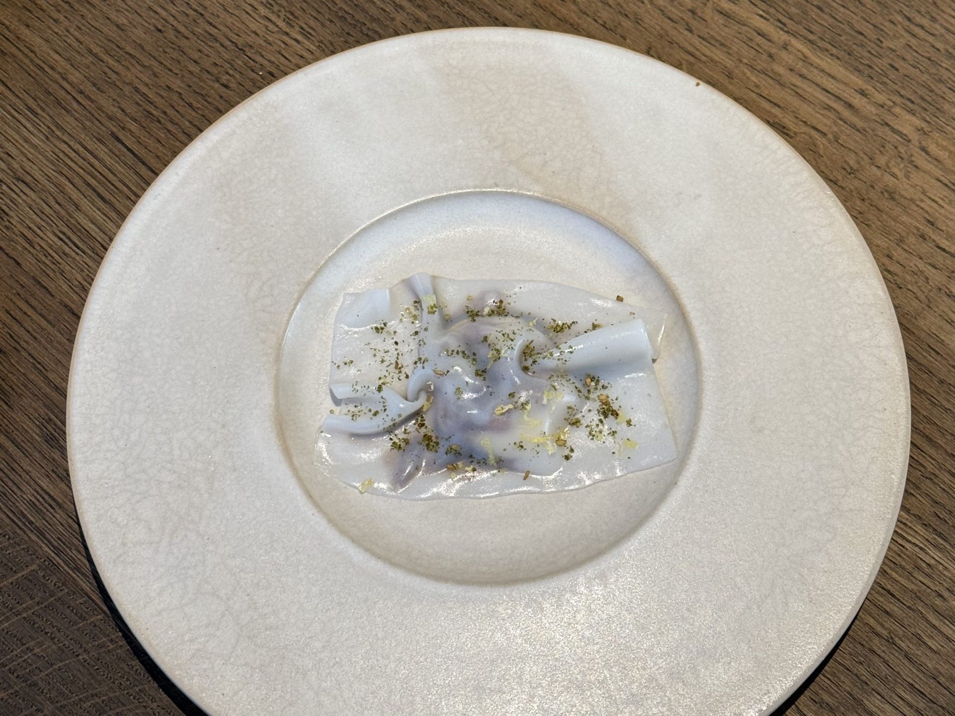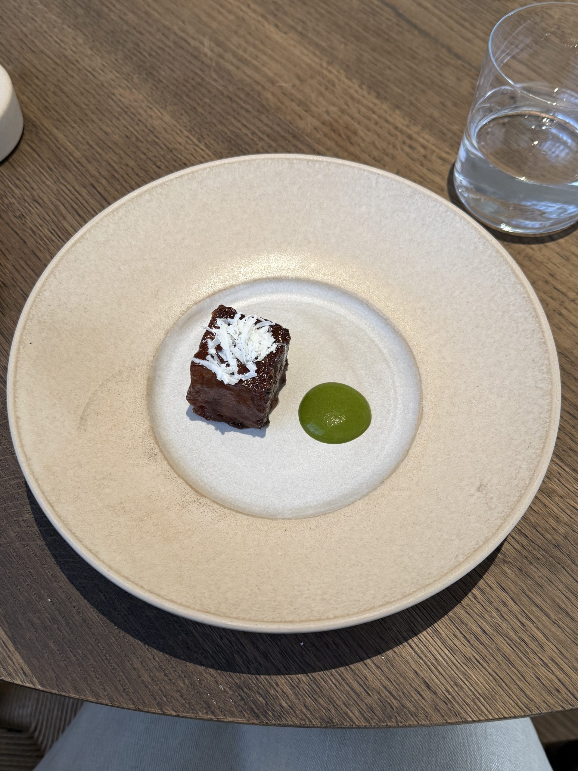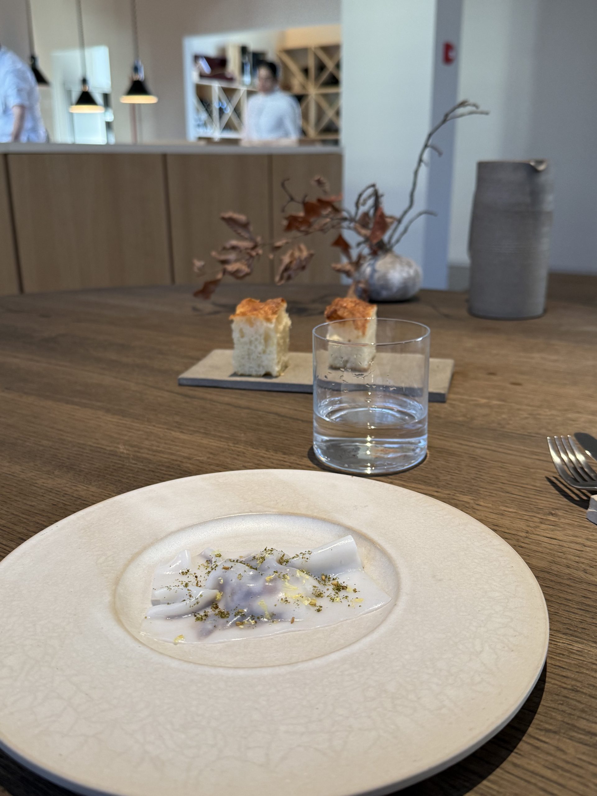 La coerenza è il vero lusso di questo luogo. Dalla selezione delle materie prime — affidata a piccoli produttori etici — alla cantina costruita con rigore, tra etichette biologiche, naturali e Champagne di nicchia; fino alle ceramiche realizzate a mano da Barbara Arcieri, pensate insieme allo chef per accogliere ogni preparazione come un paesaggio da abitare. Ogni elemento dialoga con l’altro.