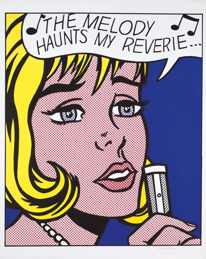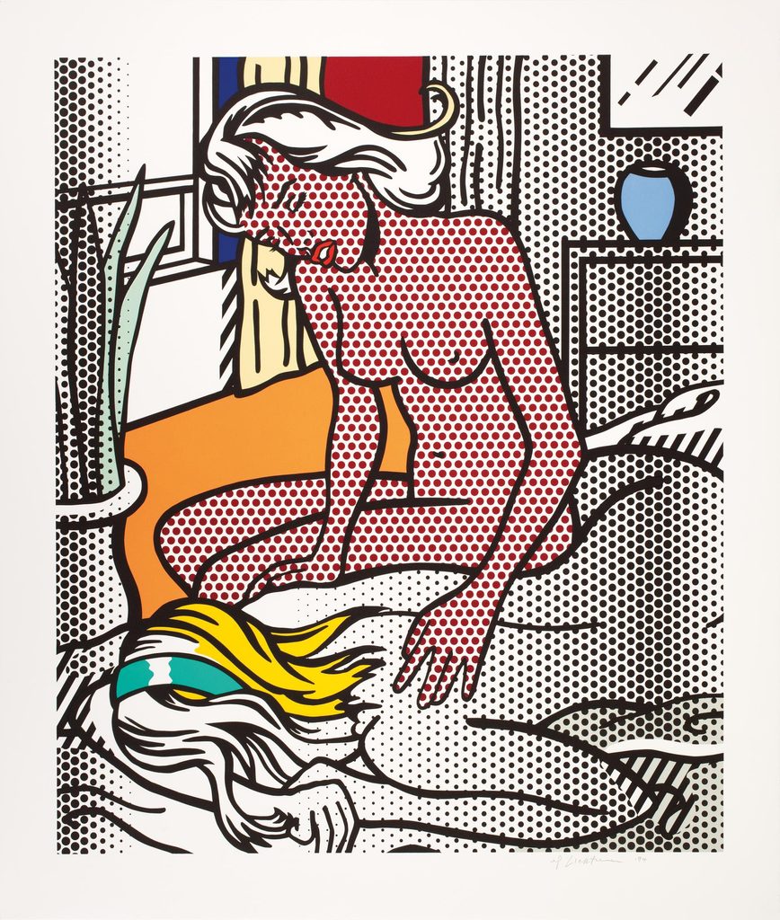Quindi la mostra, seguendo un andamento principalmente cronologico che coincide con uno sviluppo tematico, ripercorre l’intera carriera artistica di Lichtenstein a partire dagli ’60, in cui ritroviamo i suoi temi e generi, dai fumetti e la pubblicità, la natura morta, il paesaggio, le incursioni nell’astrazione e nelle forme dei grandi maestri, gli interni bidimensionali, fino alla serie dei nudi femminili.