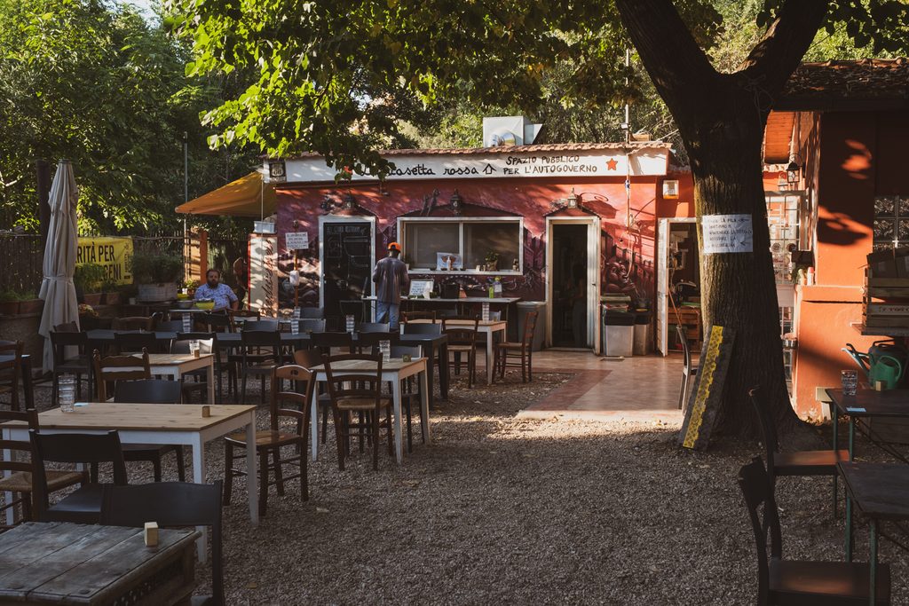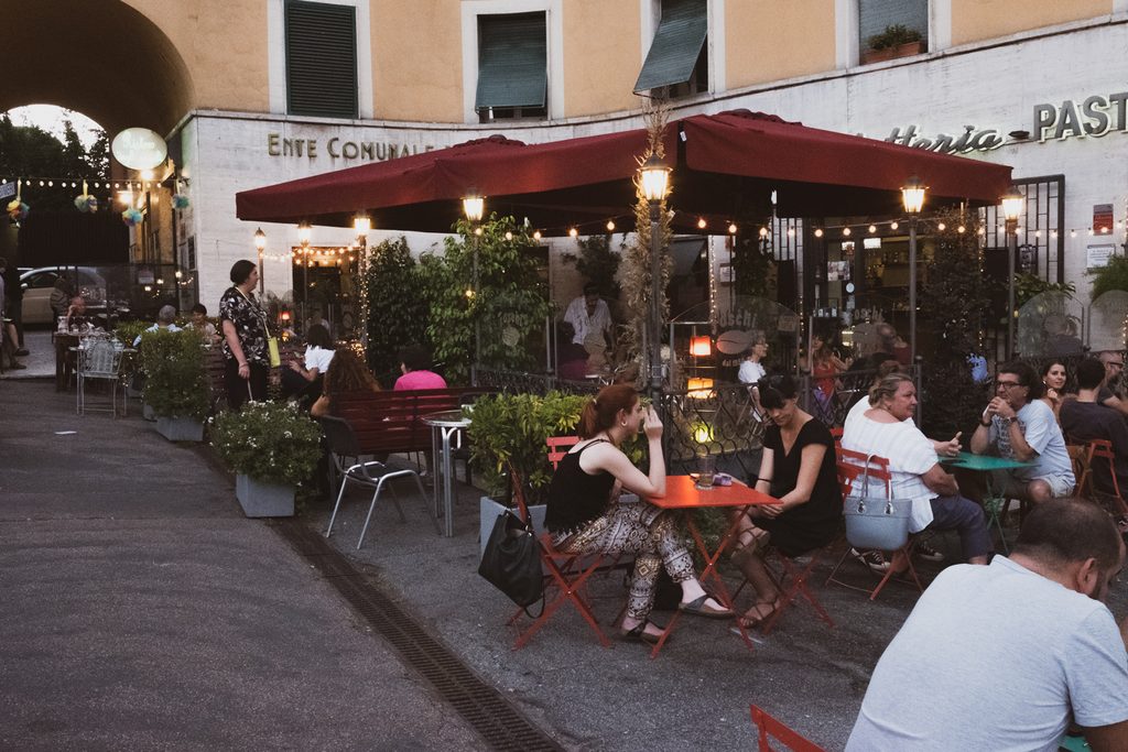 Per anni, la resistenza ai personalismi e all’isolamento sociale, generazioni e generazioni di bambini di Garbatella l’hanno imparata alla Chiesoletta, nell’oratorio di quella San Filippo Neri guidata da Padre Guido, che c’ha insegnato a stare insieme e a qualcuno pure a calciare molto bene il pallone – tra questi lo “shangaino” Agostino Di Bartolomei, nato nella vicina Tor Marancia (storicamente soprannominata “Shangai” per il suo terreno paludoso), ma cresciuto da quest’altra parte della Cristoforo Colombo e poi capitano della Roma dello scudetto dell’83. Per molti aspetti, Garbatella resiste pure alle fratture generazionali, con i vecchi esercizi commerciali storici – dai vini sfusi alle trattorie fino ai fornai, le pasticcerie e i barbieri – affinacati a realtà più giovani o dal taglio più contemporaneo che però mantengono una propria autenticità – che si tratti di bistrot a km0 o bar, street food, pizzerie o gallerie fotografiche. La contaminazione con comunità straniere non è totalmente assente – gli indiani sono maestri di sartoria, bangla e cinesi non mancano – ma comunque contenuta, addirittura armonica se pensiamo agli squilibri e alle frizioni di altre zone di Roma.