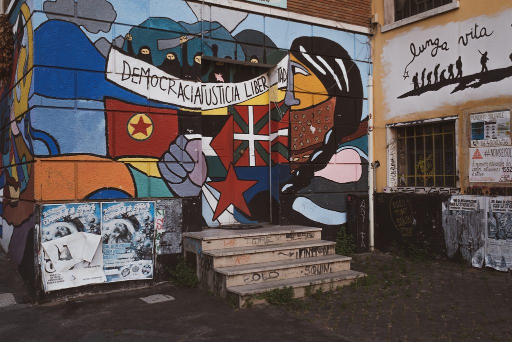 È qui, in piazza Brin, che col sacco della cooperativa inizia anche l’eterno conflitto tra la borgata e il fascismo – che, ricordiamo, non ebbe il merito di iniziare la costruzione di Garbatella, ma di spingere sull’acceleratore dell’edilizia semplificandone il modello originario con le “case rapide” o gli “Alberghi” di piazza Biffi, che poi divennero anche una sorta di ghetto per dissidenti del regime. Perché la Garbatella di oggi è ancora legata indissolubilmente alla sua storia, è un’evoluzione di quell’identità: il quartiere che ieri mal tollerava i discorsi del duce nel Cinema Teatro Garbatella (oggi Palladium), che nascondeva gli ebrei e i dissidenti del fascismo, che esponeva le bandiere rosse alle finestre quando nel ’50 i missini attaccavano (fallendo) la sede del Partito Comunista Italiano, l’ancora oggi (r)esistente La Villetta, il quartiere che quando nel 1970 i giovani scendevano in piazza contro le guerre americane li nascondeva e proteggeva dalle cariche della polizia come fossero tutti suoi figli. Borgata rossa (e orgogliosamente giallo rossa), Garbatella oggi è il cuore dell’esperimento “Municipio Solidale”, una rete sociale voluta dall’attuale presidente del Municipio VIII Amedeo Ciaccheri durante la recente emergenza sanitaria ed economica in supporto alle famiglie in difficoltà, ma soprattutto che tiene viva quella rete sociale – attraverso i cittadini volontari ma pure attraverso molte realtà culturali e politiche – che è l’energia dal basso che tiene in vita il quartiere, mantenendone viva e vigile l’anima, pur nella sua estetica tranquilla e bucolica.