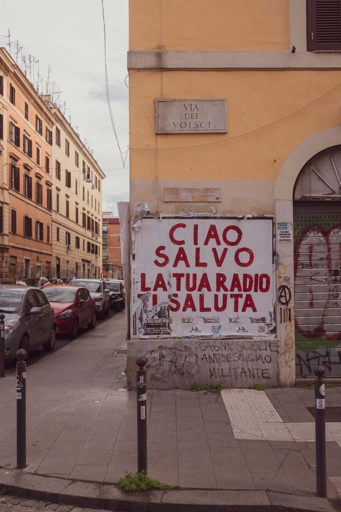 Ed è vero: San Lorenzo oggi incarna tutte queste contraddizioni. Ma non solo. Qui a complicare le cose è stata pure la disgregazione identitaria della Sinistra, soprattutto quella extra-parlamentare… Da sempre radicata nel quartiere. Per cui, sì, passeggiare dentro San Lorenzo è un po’ come entrare in un gigantesco centro sociale incastonato tra la Stazione Termini, l’Università La Sapienza, il Cimitero Monumentale del Verano e lo scalo ferroviario: manifesti di cortei, murales, falci e martelli, tag, adesivi, poster, scritte sovversive ovunque, flyer di concerti punk e serate techno… Ma l’incuria – con l’abbondare di bottiglie di birre abbandonate, sporcizia, feci di cani sui marciapiedi – e l’impatto della gentrificazione – con la scomparsa di tanti sanlorenzini doc, i b&b che nascono come funghi, la chiusura di molti laboratori artigianali sostituiti da ristorazione “mordi e fuggi” e decine di negozietti bengalesi – rischiano di disgregare in parte quel tessuto “popolare” creato da chi il quartiere lo viveva come proprio, identificandosi appieno con la sua storia e la sua identità. E ora si scontra con chi invece lo sfrutta part-time.