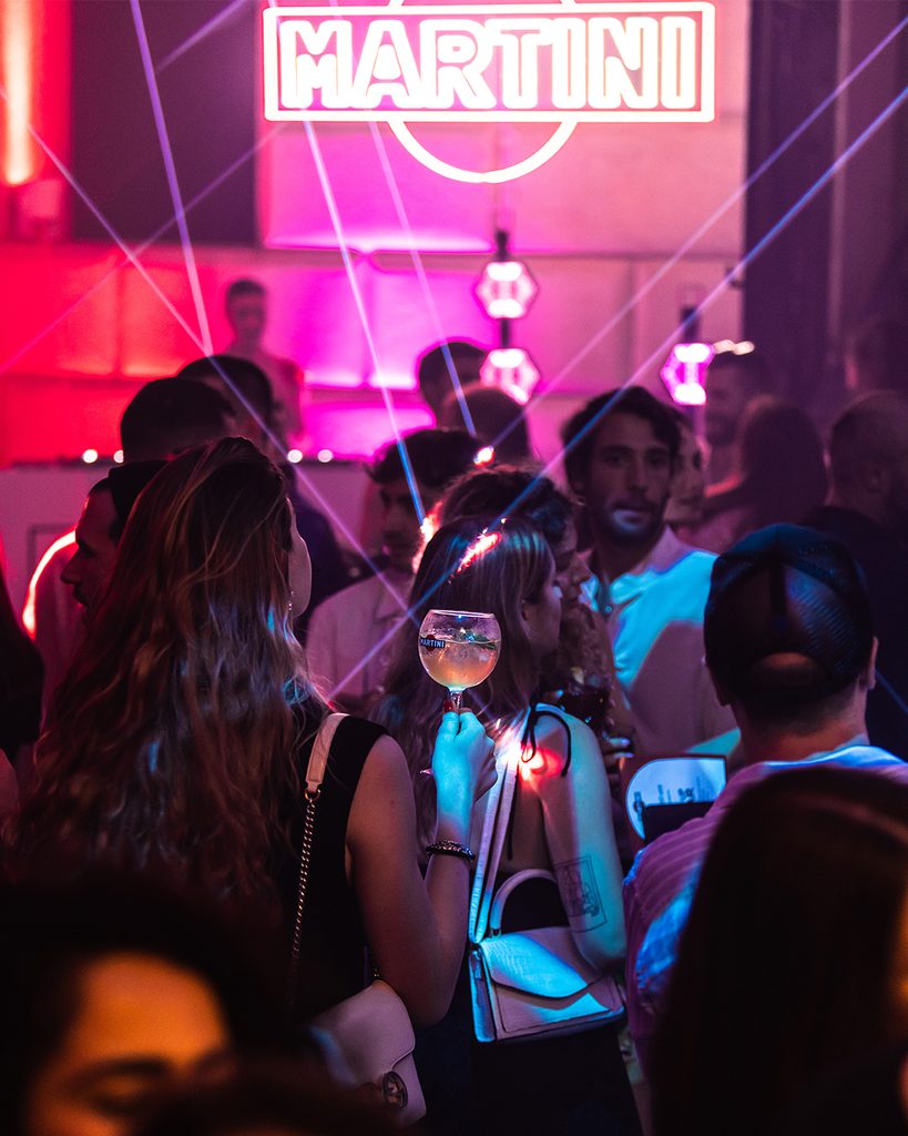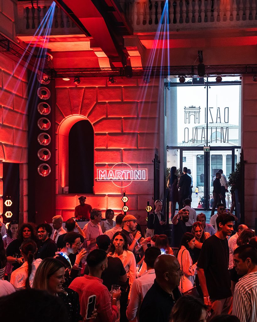 Ai Dazi e all’Arco della Pace si celebrano insomma eventi maestosi, che hanno a che fare con la Storia, quella che dovrebbe avere la S maiuscola – che si mette soltanto quando si ha a che fare con qualcosa, qualche evento o qualche entità che la Storia l’ha fatta, percorrendola in lungo e in largo per tanto tempo da assumere i caratteri del mito. Una di queste entità è Martini, che sceglie di far festa ai Dazi per i suoi 160 anni. Centossessanta: icona indiscussa dell’aperitivo italiano. Per darvi un contesto, era il 1863 quando Alessandro Martini, imprenditore, e Luigi Rossi, liquorista, idearono il loro primo vermouth: la miscela botanica contrastata da note caramellate e quel colore rosso che rimane attaccato tanto alla retina quanto al palato.